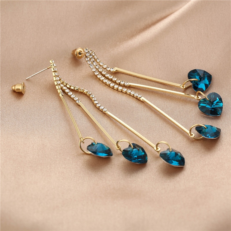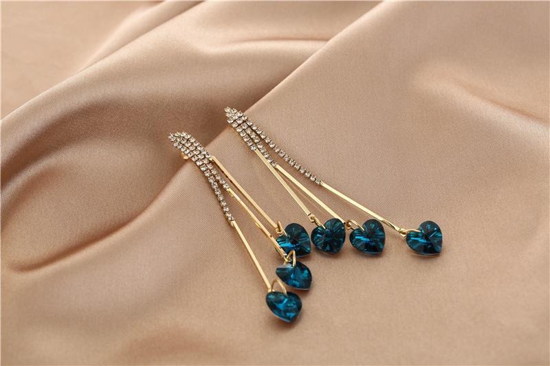 925 Silver Needle Blue Diamond Heart Long Diamond Tassel Earrings Korean Temperament Exaggerated Fashion Earrings Net Celebrity Earrings