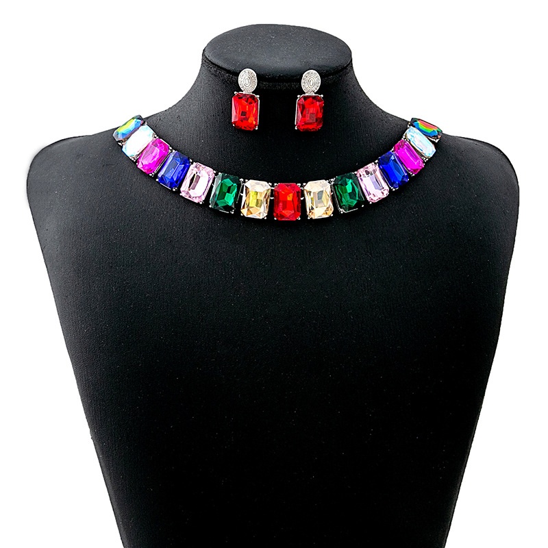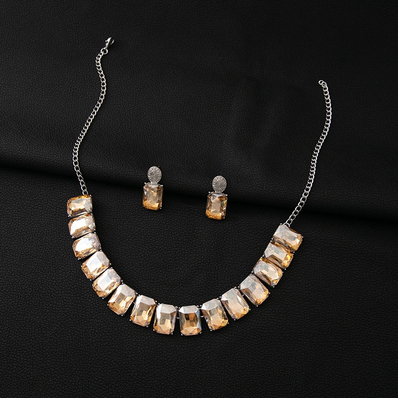 European And American Luxury Crystal Square Jewelry Set Fashionable Temperament Evening Accessories Necklace Exaggerated Earrings For Women