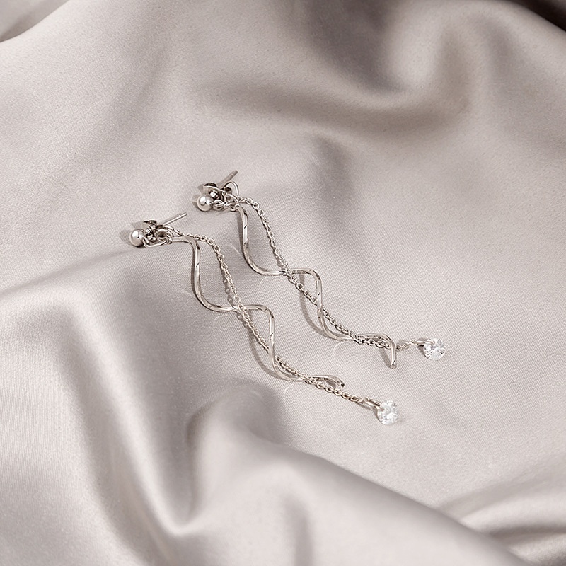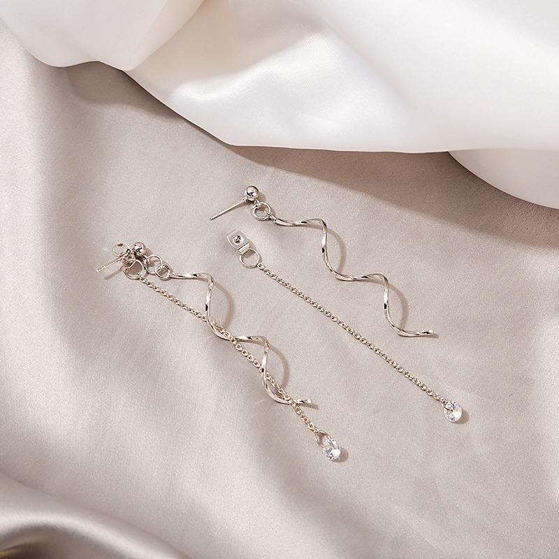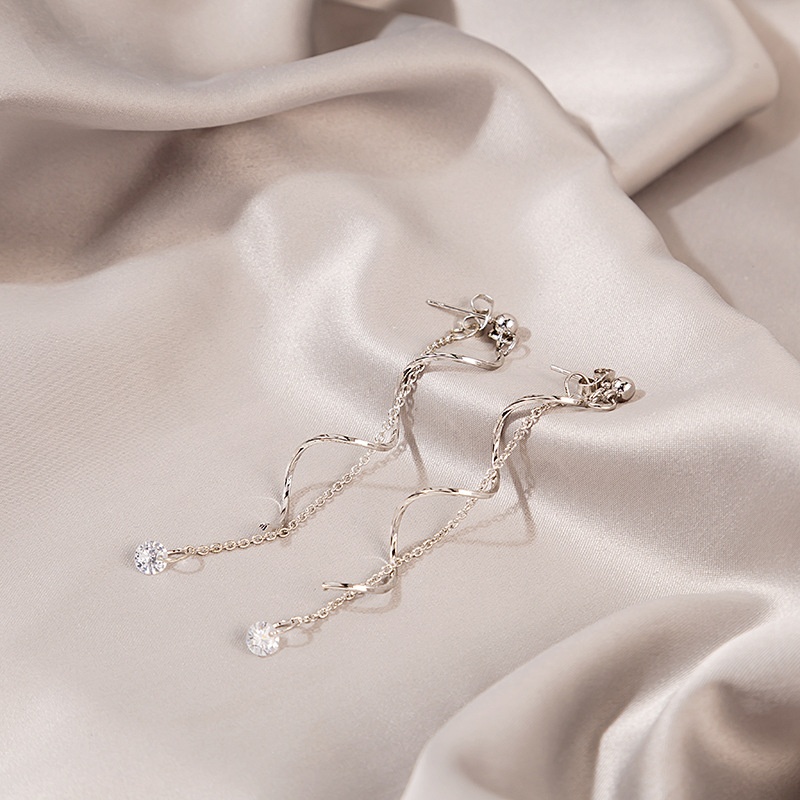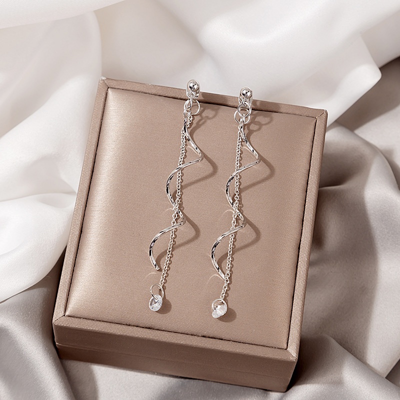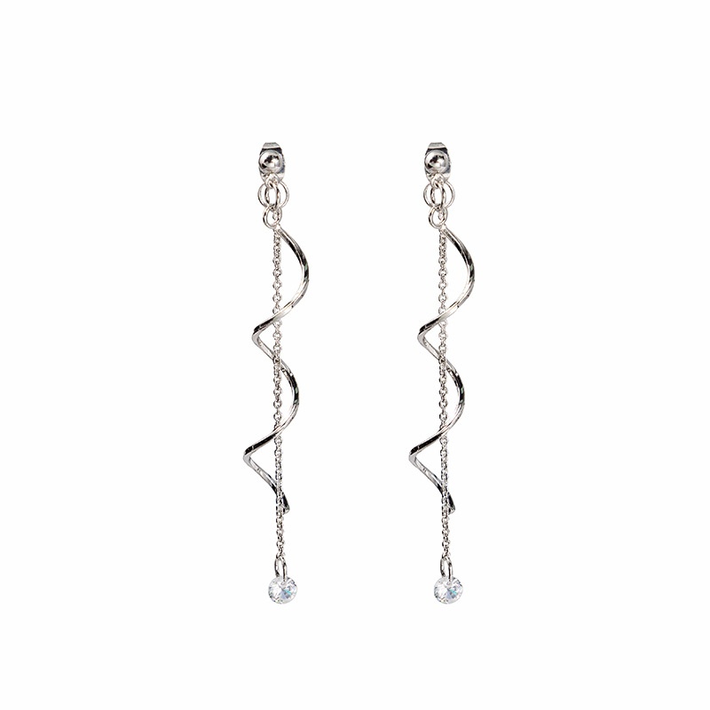 Silver Needle Long Tassel Twisted Fashion Winding Micro-inlaid Zircon Earrings Celebrity Temperament Earrings For Women