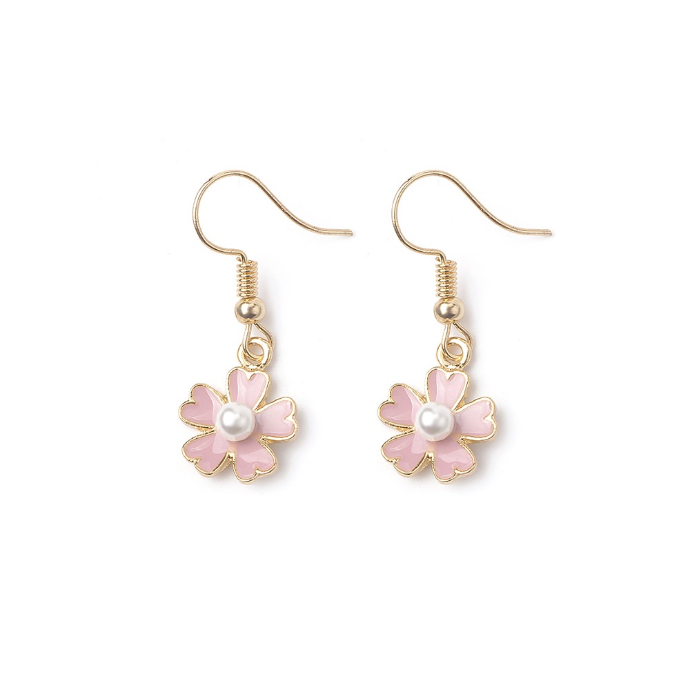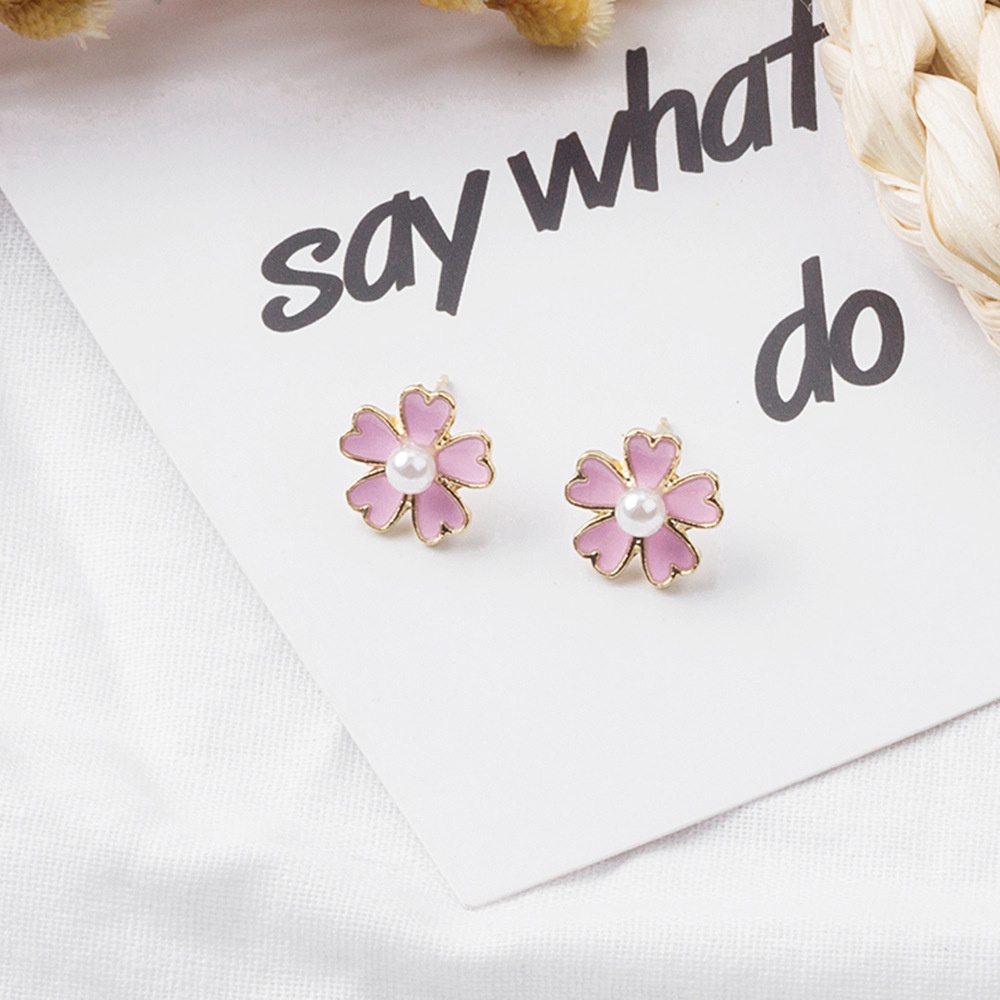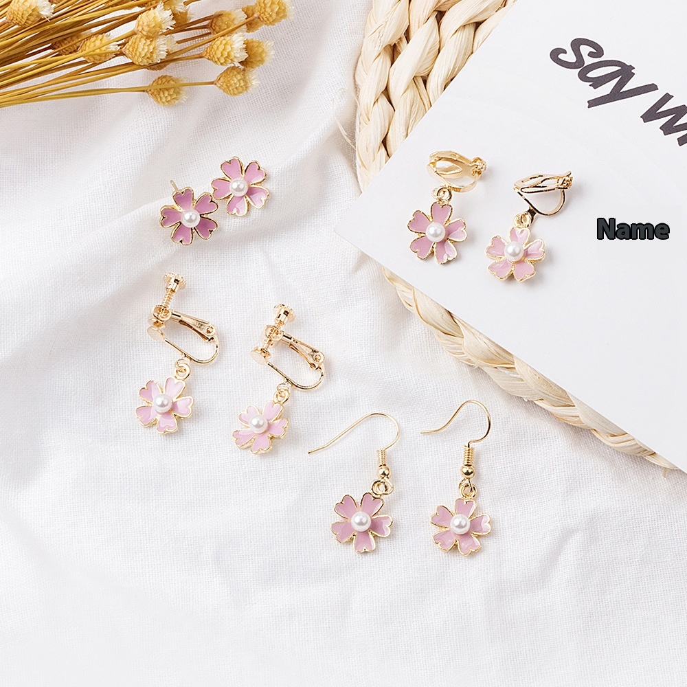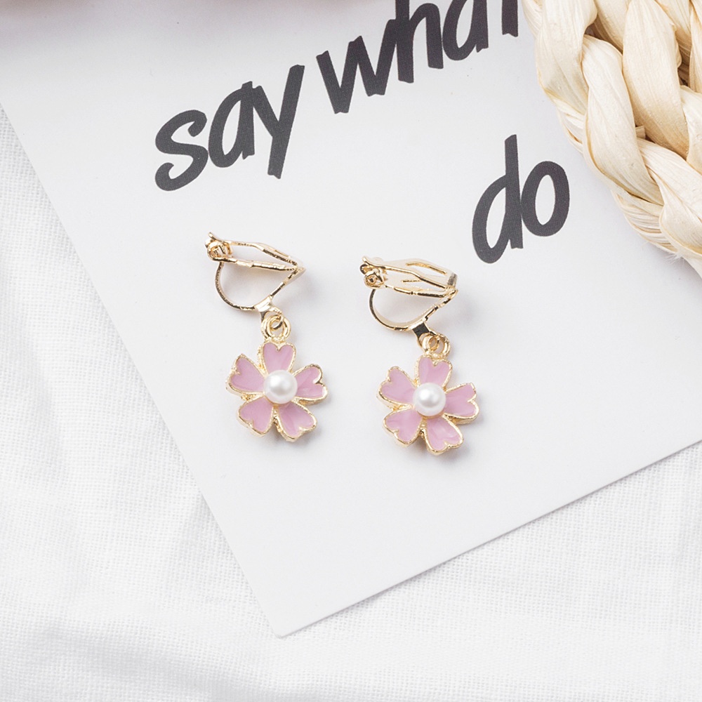 Summer Fresh Flower Five-petal Earrings Pink Girlish Temperament Pearl Earrings Ear Clips