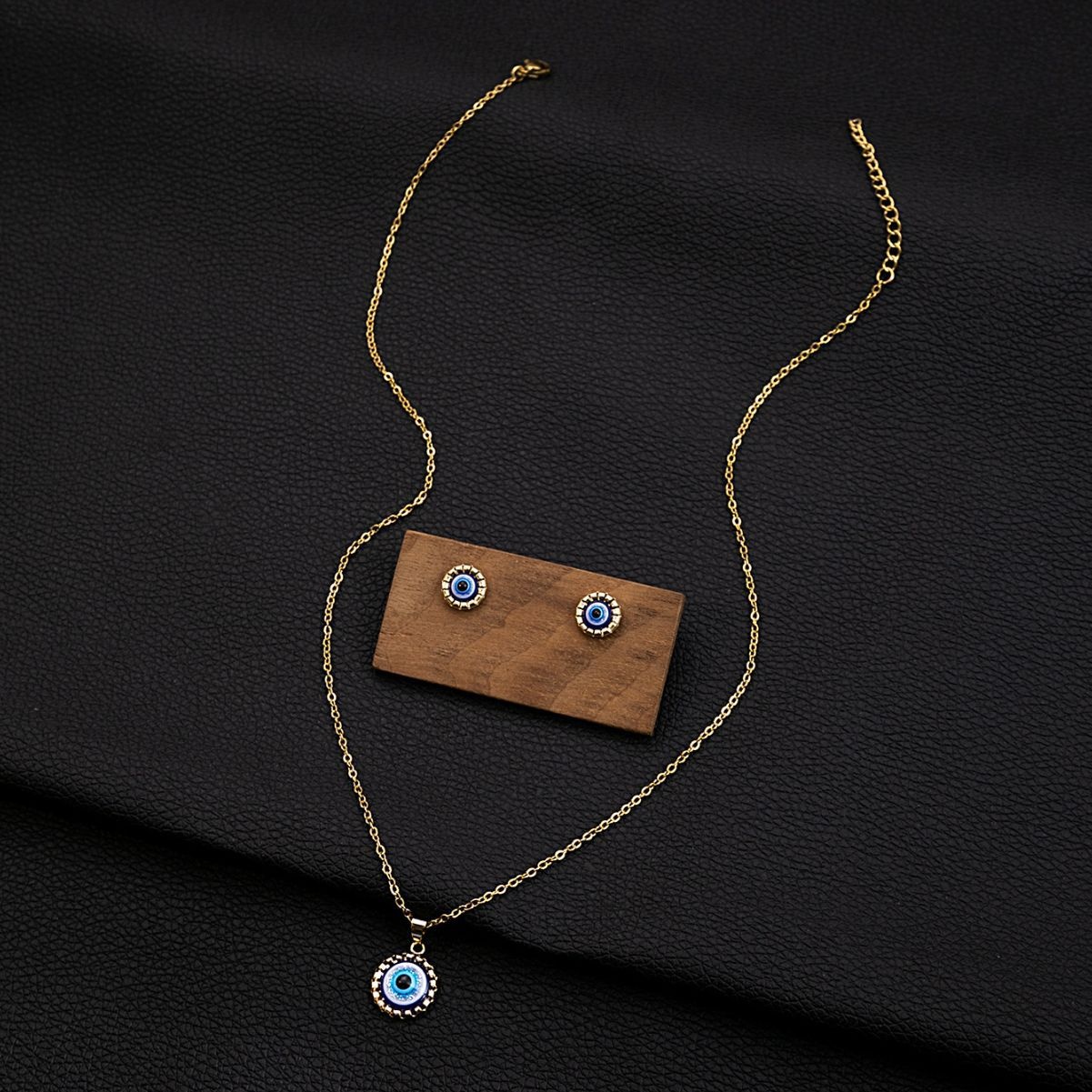 European And American Personality Nightmare Eye Pendant Necklace Design Inlaid Geometric Round Earrings Blue Eyes Set Female
