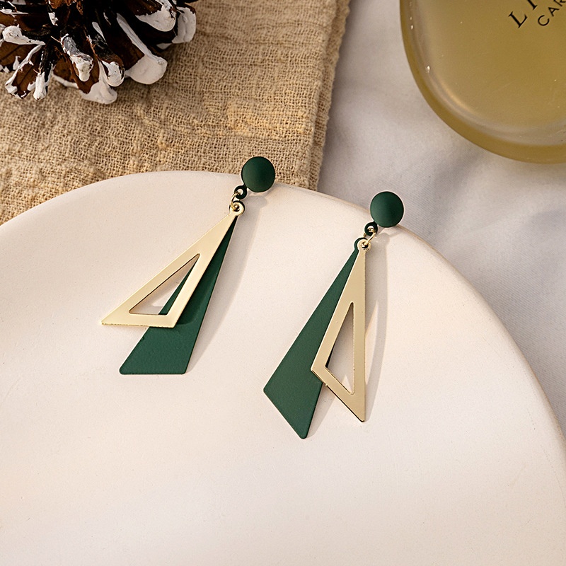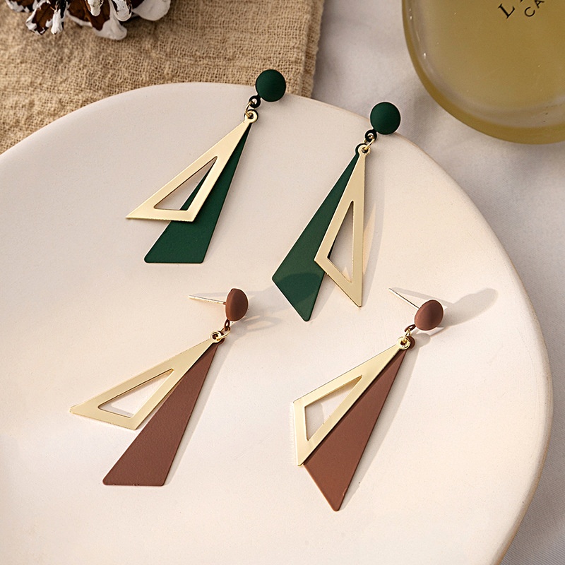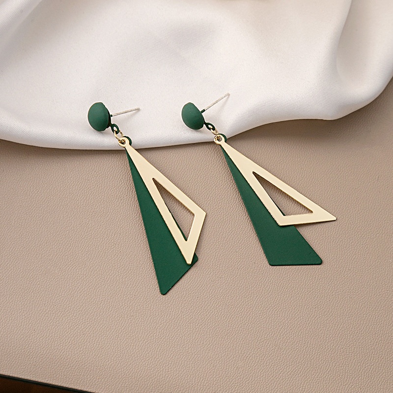 Korean Style Geometric Female Temperament Simple Earrings Atmospheric Colorful Fashion Triangle Earrings Fresh Long Earrings For Women