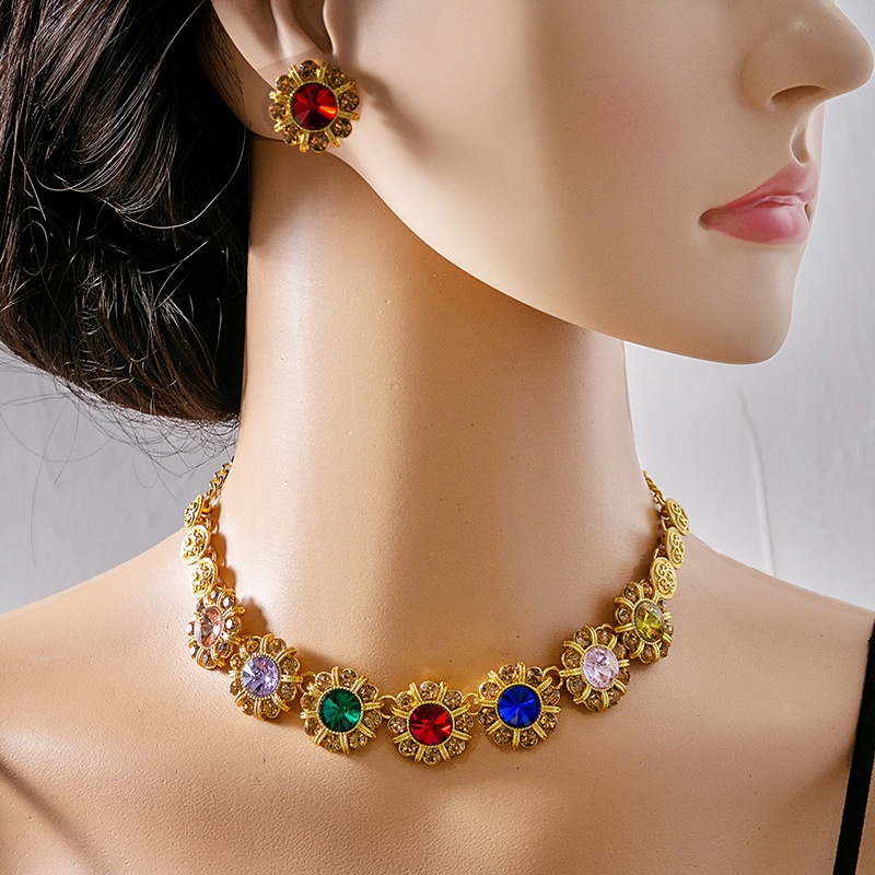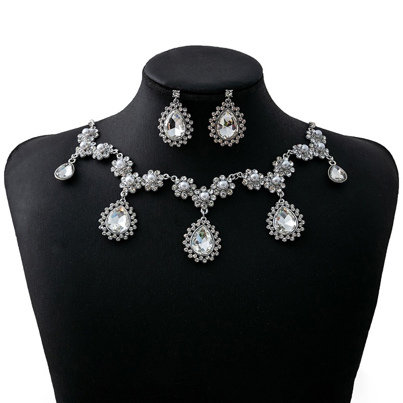 European And American Luxury Atmospheric Water Drop Jewelry Set Geometric Round Pearl Earrings Elegant Flower Necklace For Women