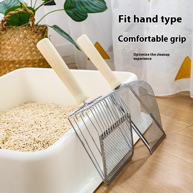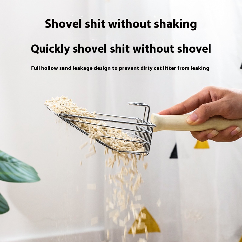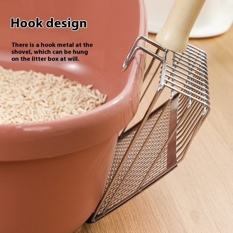Havo Bag Hook Wooden Handle Stainless Steel Cat Litter Shovel Fine Hole Eight Mesh Metal Cat Litter Shovel Feces Shovel Artifact