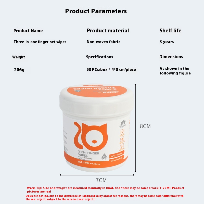 Pet Wipes Cat Finger Sleeves Three-in-one Small Dog And Cat Brushing Tools Universal Pet Wipes50 Pieces