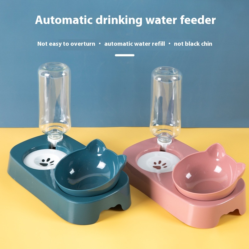 Non-slip Oblique Cat Bowl Plastic Cat Food Bowl Easy To Eat Lick Water Bottle Double Bowl Drinking Water Bowl Pet Bowl Pet Supplies