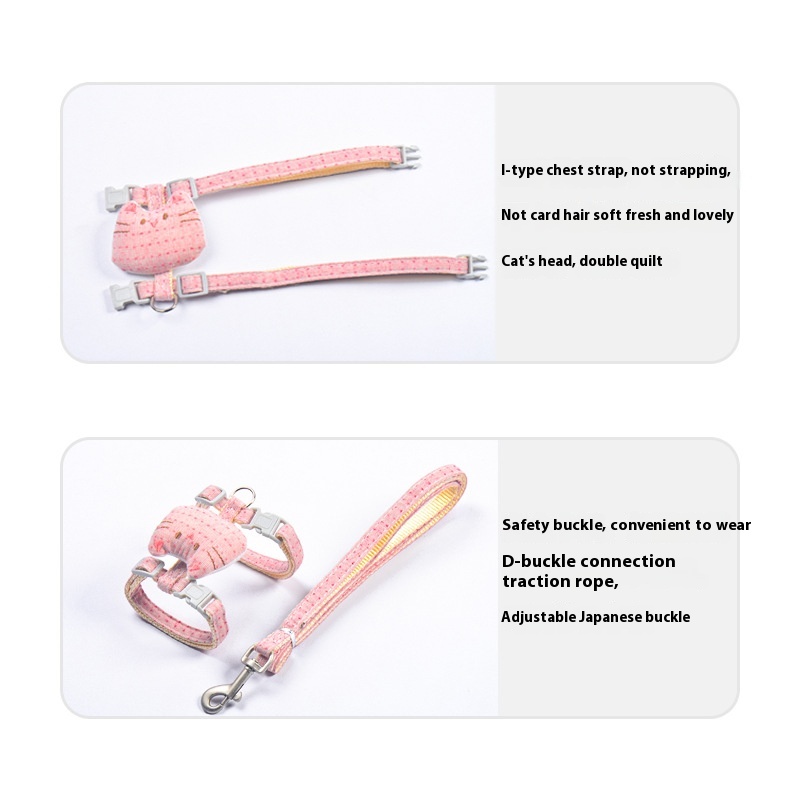 SHavo Simple Solid Color Pockmarked Cat Head I-shaped Chest Harness Buckle Traction Belt Pet Supplies