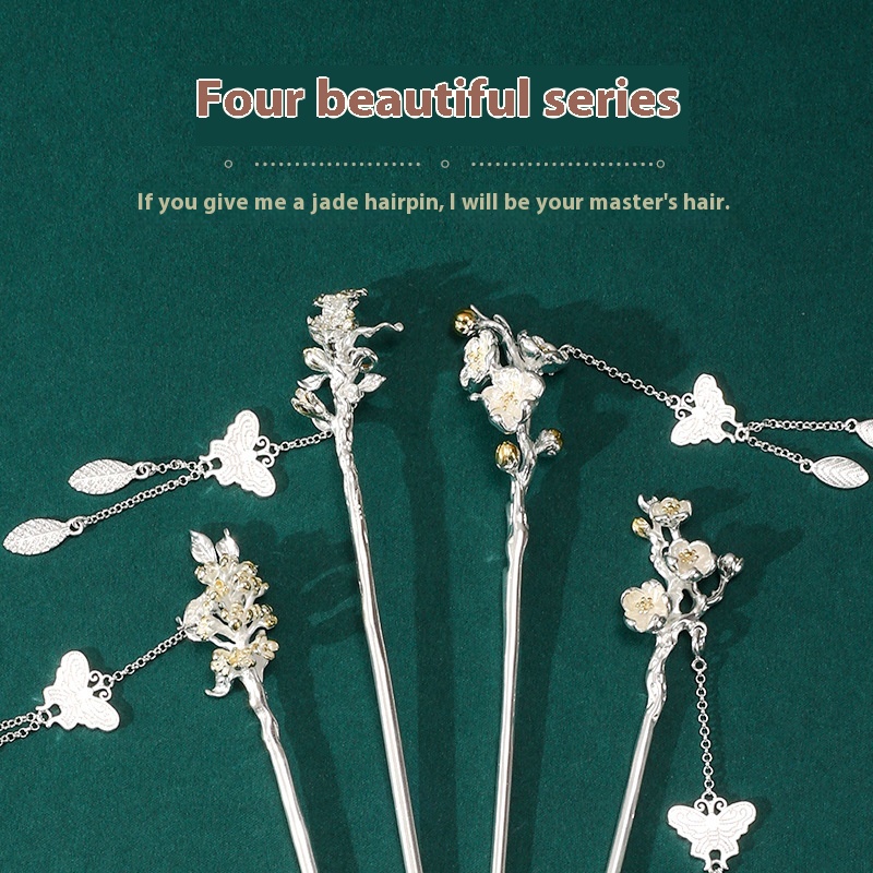 Twelve Flower Gods S925 Copper-plated Silver Ancient Style Step-shaking Hairpin Female Hanfu Headdress Hairpin Chinese Style High-end