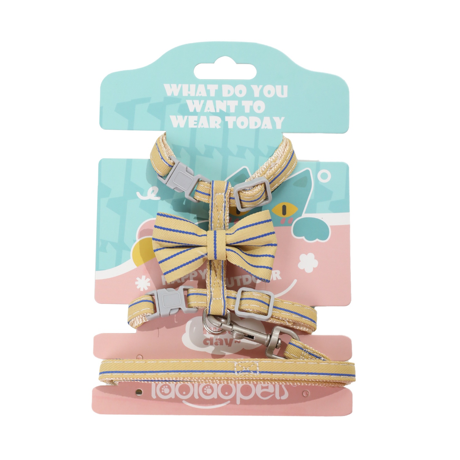 Gentleman Bow Tie Striped Cat I-shaped Traction Rope Anti-breakaway Cat Walking Rope Traction Belt Cat Rope