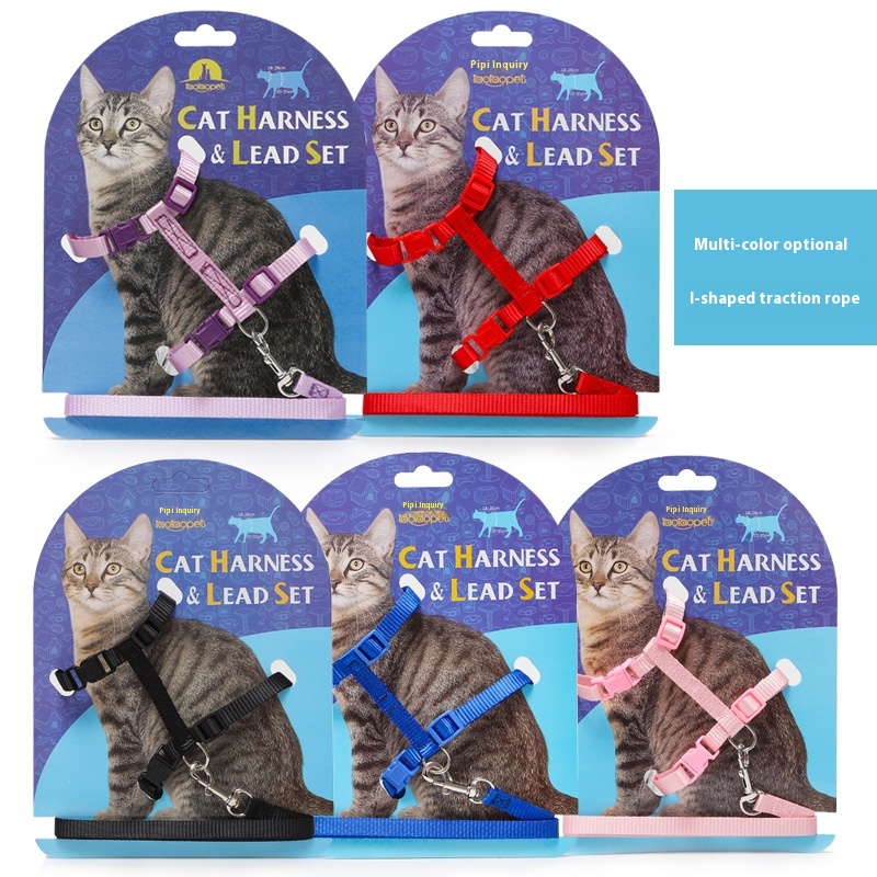 I-shaped Cat Leash Small Dog Leash Cat Leash Nylon Flat Rope Adjustable Cat Walking Rope Strap