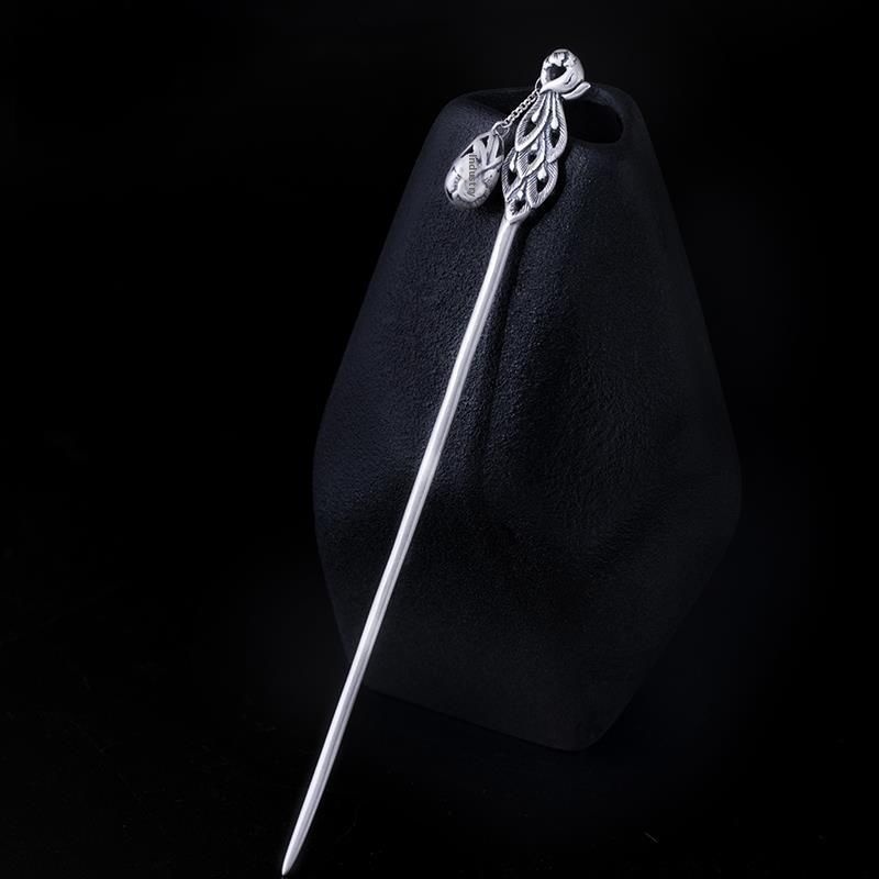 S925 Silver-plated Retro Ethnic Style Old Classical Step-shaking Hairpin Phoenix Wearing Peony Peacock Hairpin Ancient Costume And Ceremony