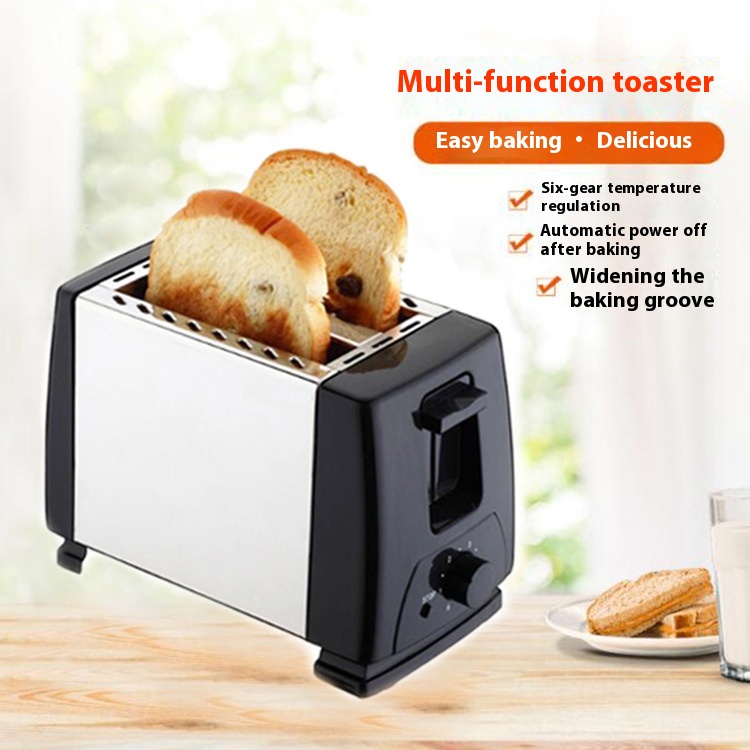 Household Stainless Steel Toaster Double Slot Toaster Fully Automatic Mini Breakfast Toast2 Slices Heating Artifact