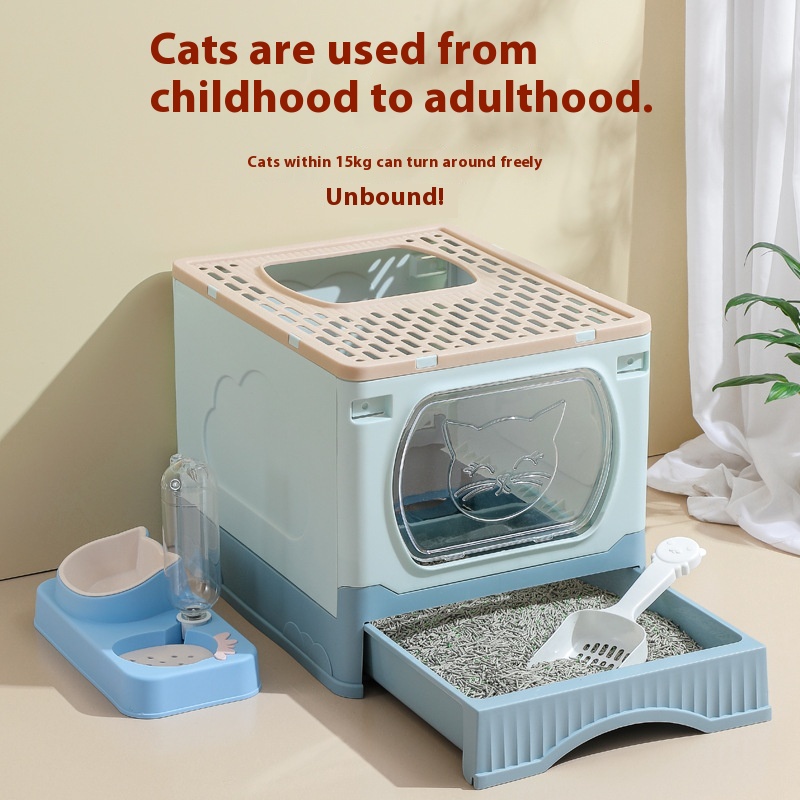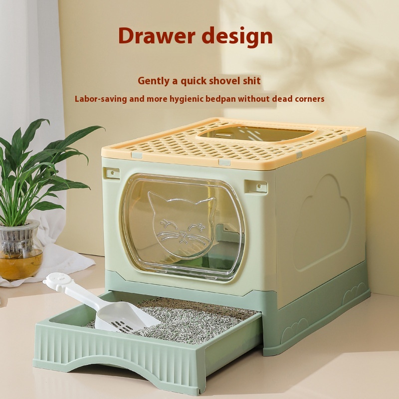 Foldable Top-entry Cat Litter Box Fully Enclosed Anti-splash Cat Toilet Drawer-style Oversized Odor-proof Cat Litter Box