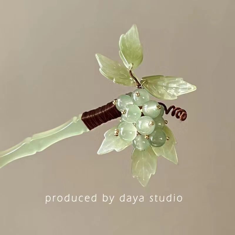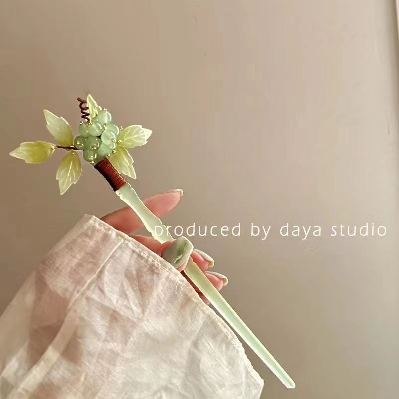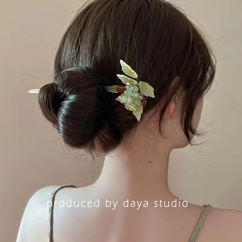 Summer Refreshing Fairy Green Beaded Grape Hairpin Pure Hand-woven High-end Hairpin For Bun Hair