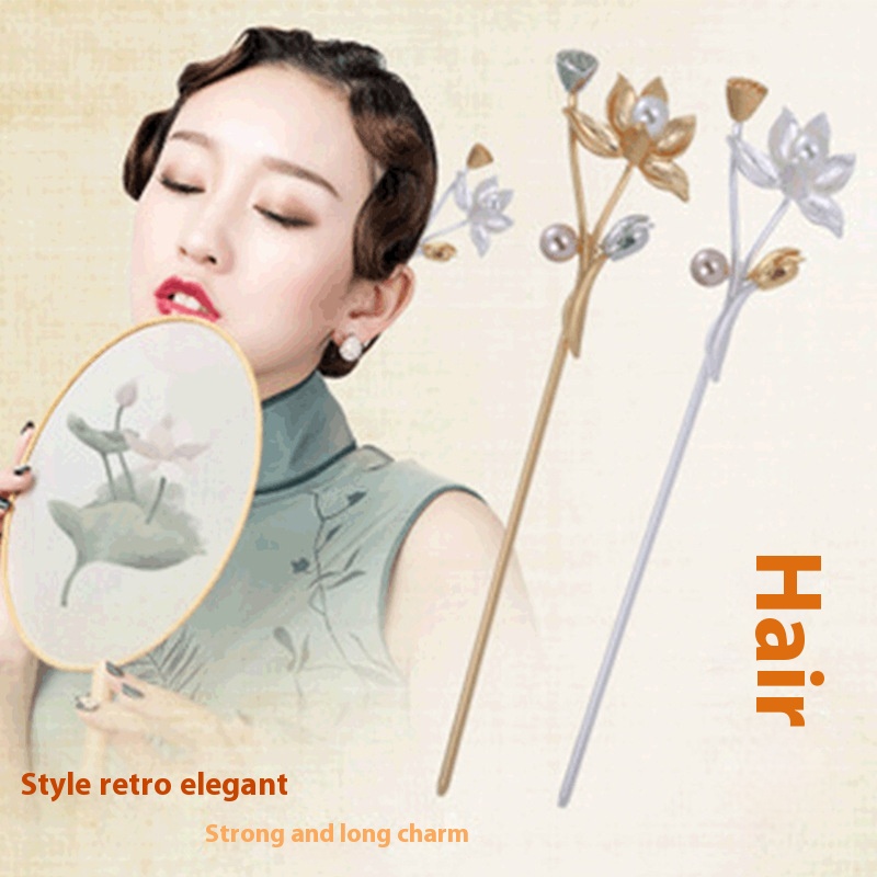 Original Design Lotus Hairpin Headdress Palace Cheongsam Ancient Costume Hanfu Step-shaking Ancient Style Hairpin Ethnic Style Jewelry