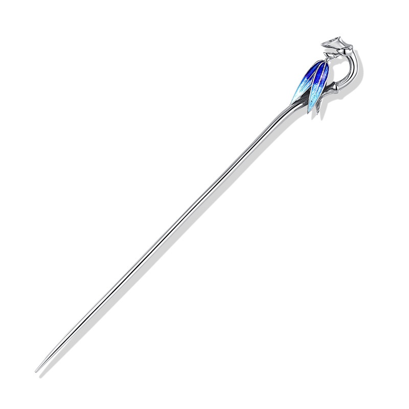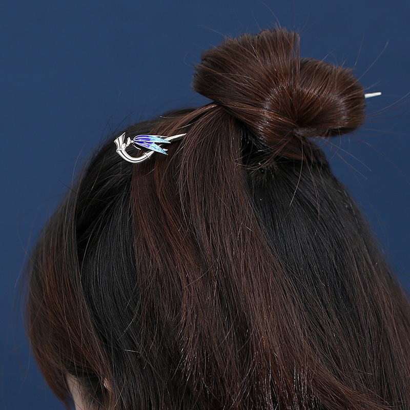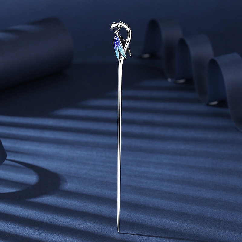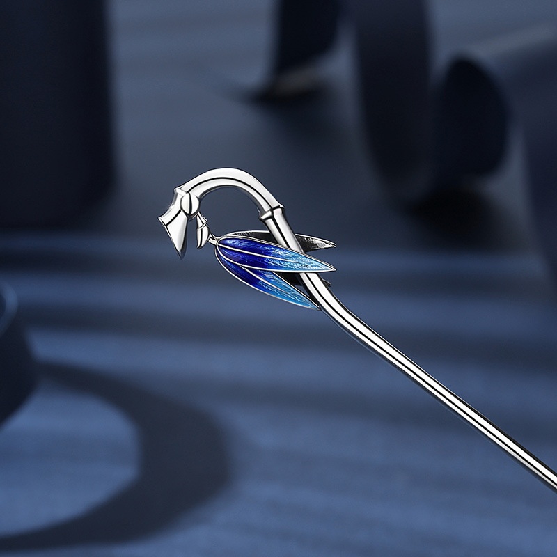 Cloisonne Bamboo Leaf Hairpin For Women,Ancient Style Hanfu,Retro Bun Hair Ornament,Blue-burned Hairpin