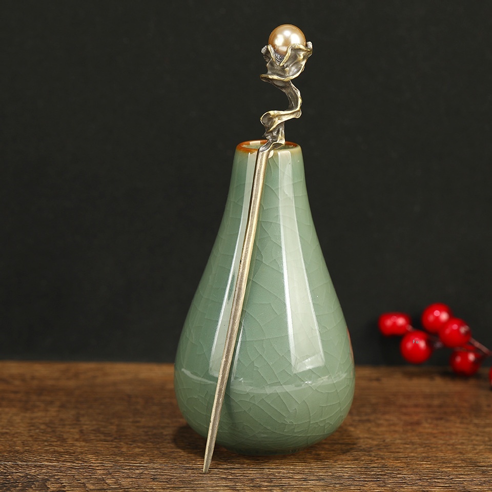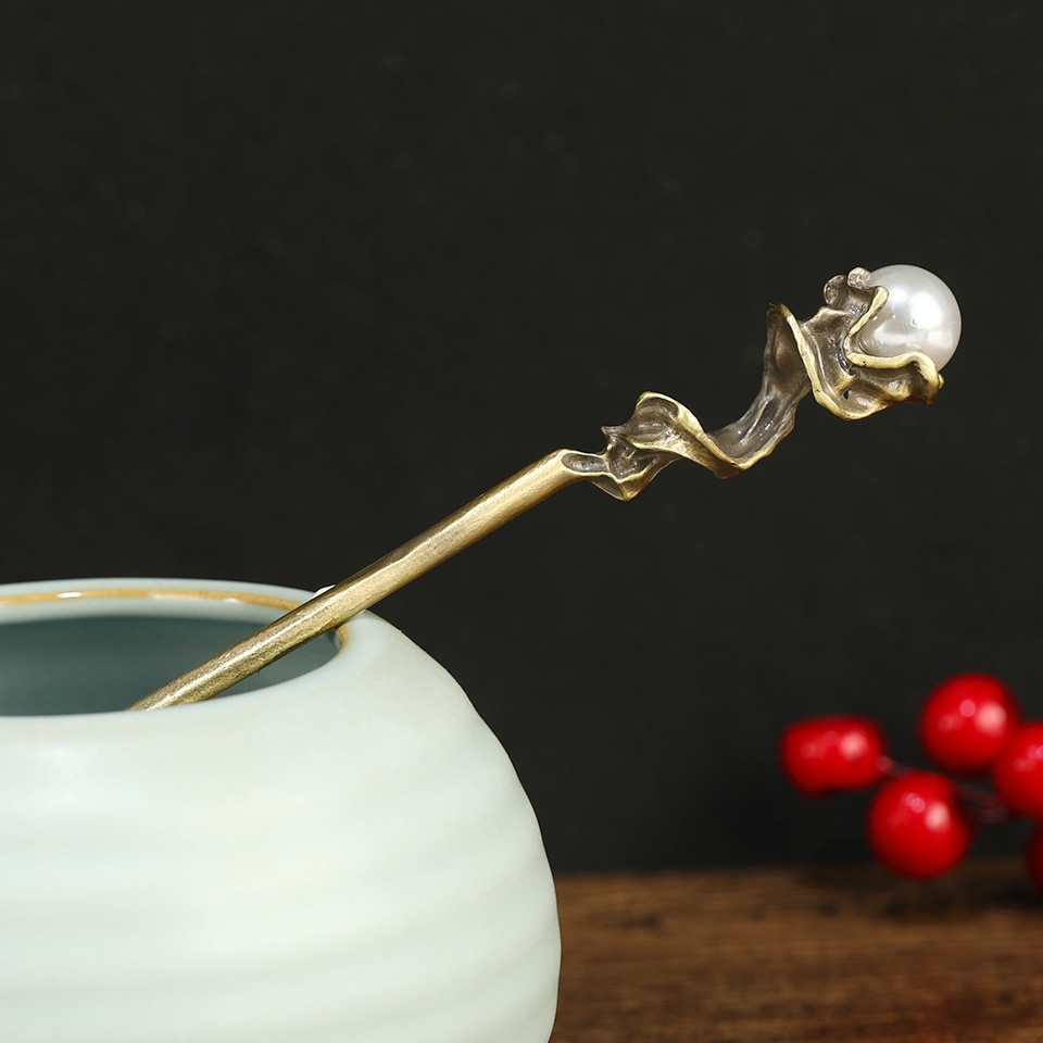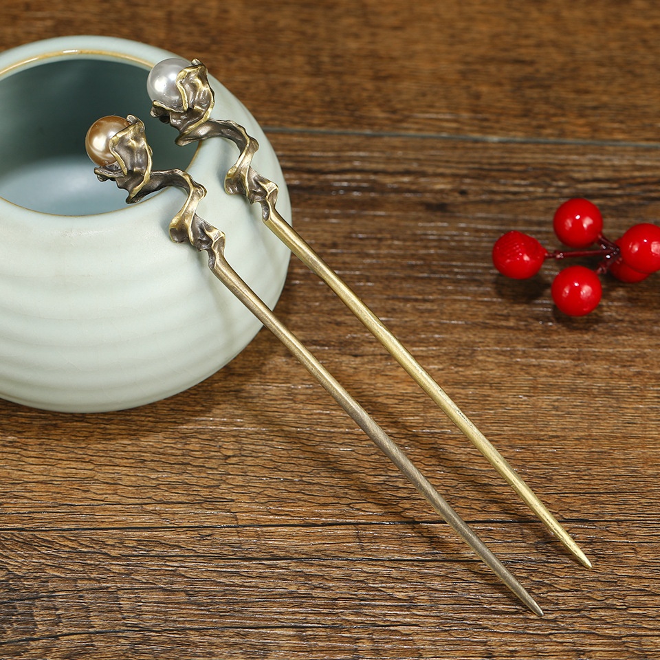 Style Ancient Bronze Pearl Hairpin High-end Women's Hairpin Retro Simple Cold Style Daily Headdress