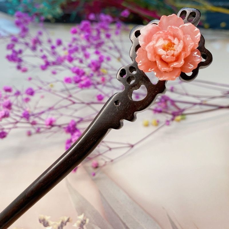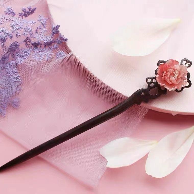 Ancient Style Hairpin Handmade Jewelry Elegant Peony Hairpin Small Fresh Hairpin Original Bun Ancient Style Wooden Hairpin