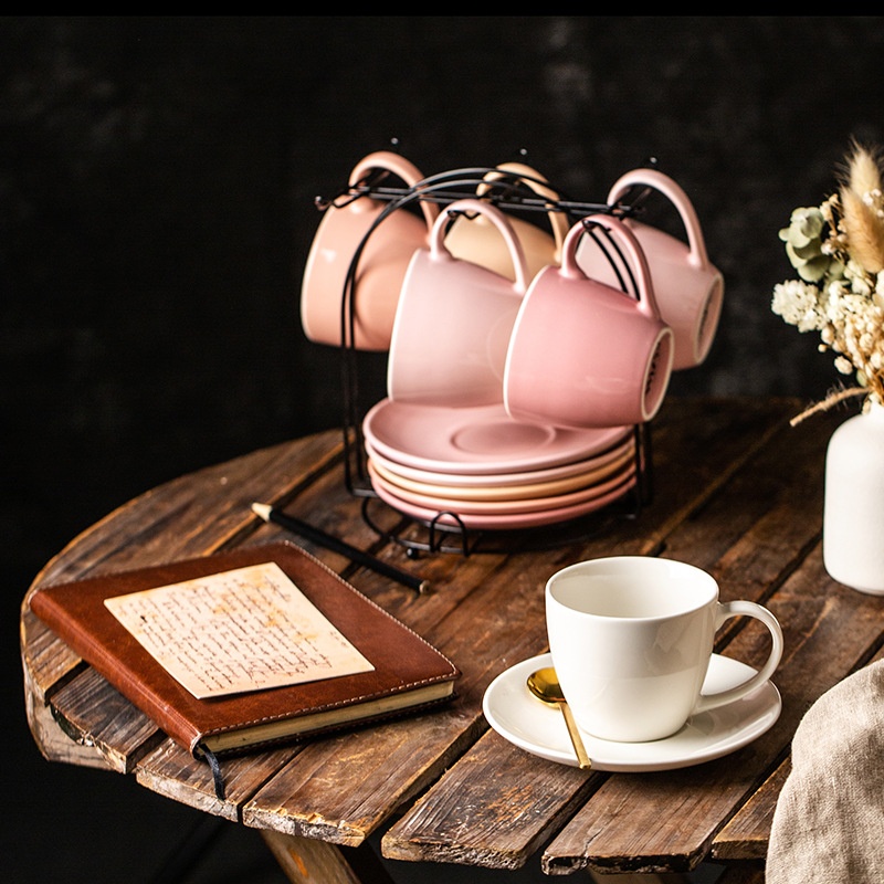 Of European Style Simple Colored Glaze Flower Tea Mug MLFull Set Of Ceramic Hand Brewed Coffee Cup And Saucer Gift Box Set