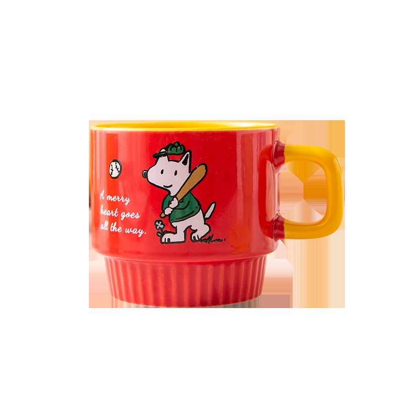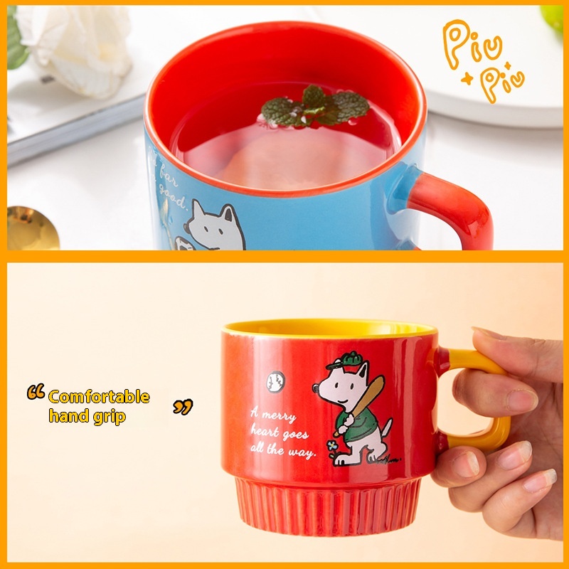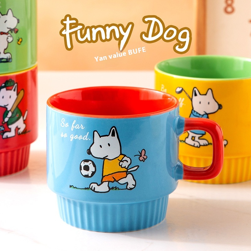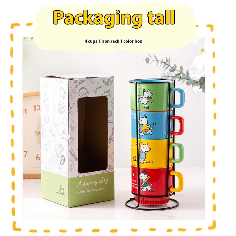 FUNNYDOGStacking Cups Four Ceramic Cups Mugs Children Girls Cartoon Contrasting Color Water Cups With Cup Holder