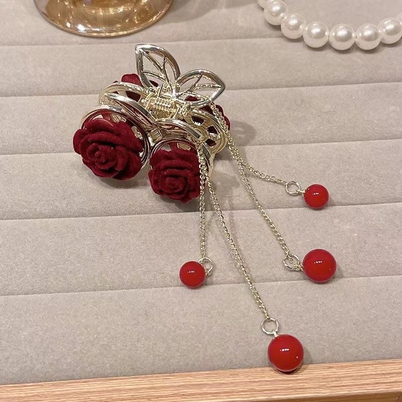 The Same Popular Model On Douyin,Upgraded Version,Red Roses With Stars,Cherry Tassel Claw Clips,Chinese Year Headdress Hair Clips