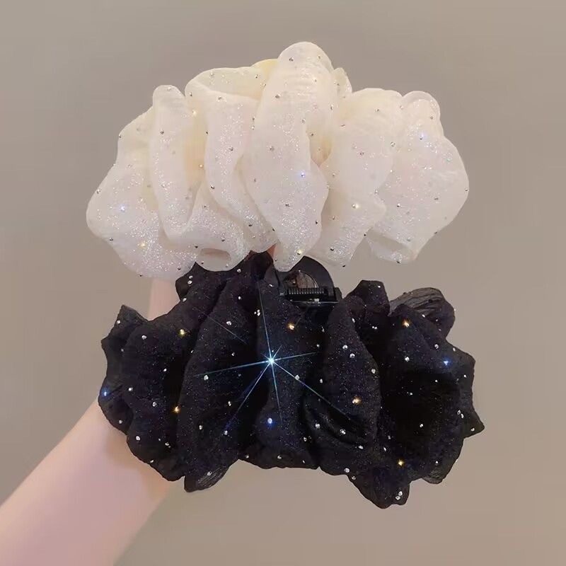 Diamond Mesh Double-sided Cloud Bubble Clip Female Temperament Socialite Style Princess Head Large Shark Clip Plate Hairpin