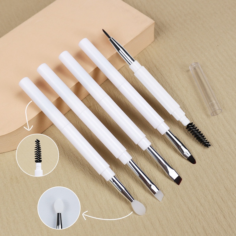 Portable Double-headed Makeup Brush Soft Hair Concealer Brush Spiral Eyebrow Brush Silicone Lip Brush With Cover Multi-function Makeup Brush