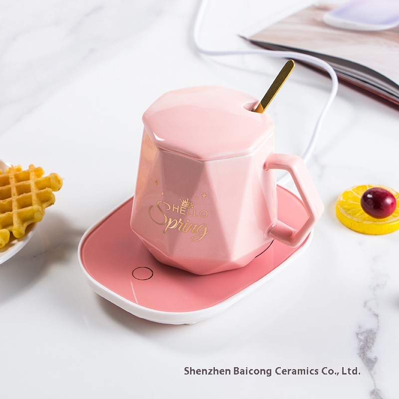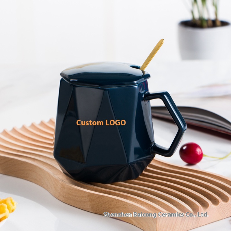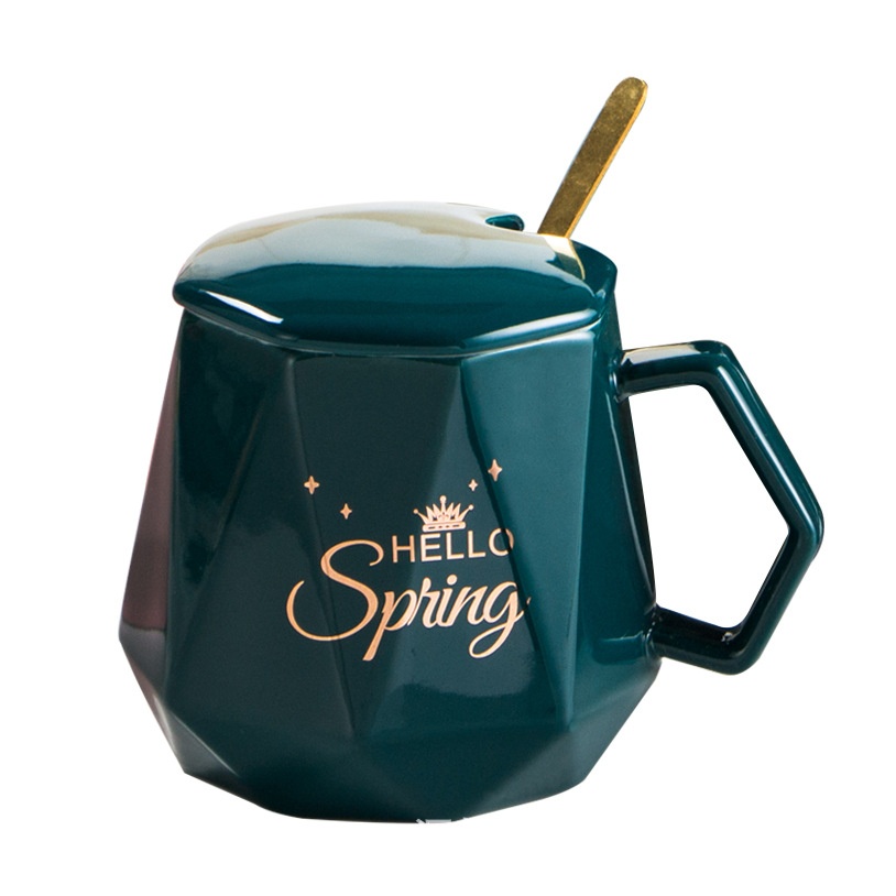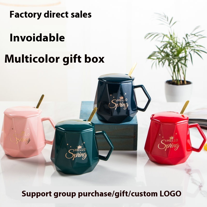 Ceramic Diamond Cup Thermostatic Cup Set Gift Box Water Cup With Cover Spoon Mug Jewelry Real Estate Creative Gift Cup