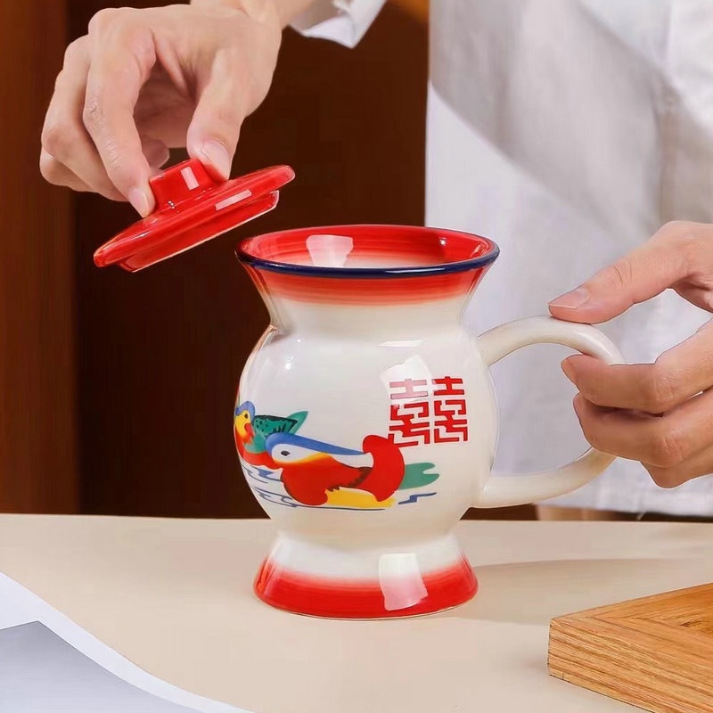 Funny Spittoon Cup Retro Ceramic Mug Office Home Water Cup With Lid Opening Gift Set Cup