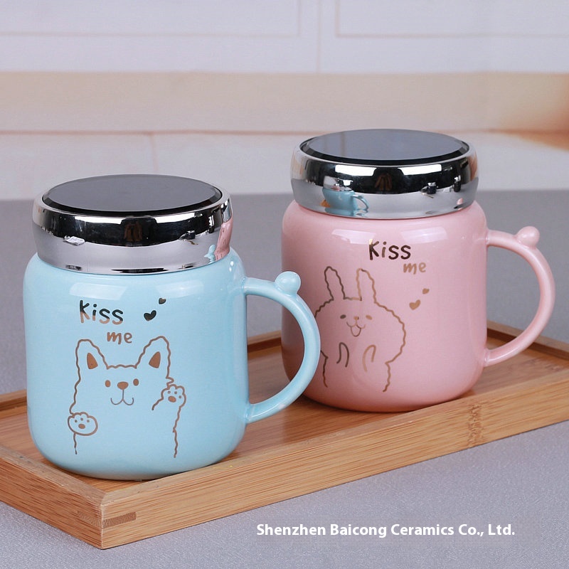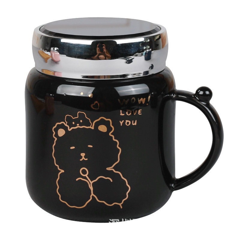 Ceramic Cup With Lid And Spoon Mirror Thermos Cup Cute Cartoon Mug Creative Couple Office Cup Gift Customization