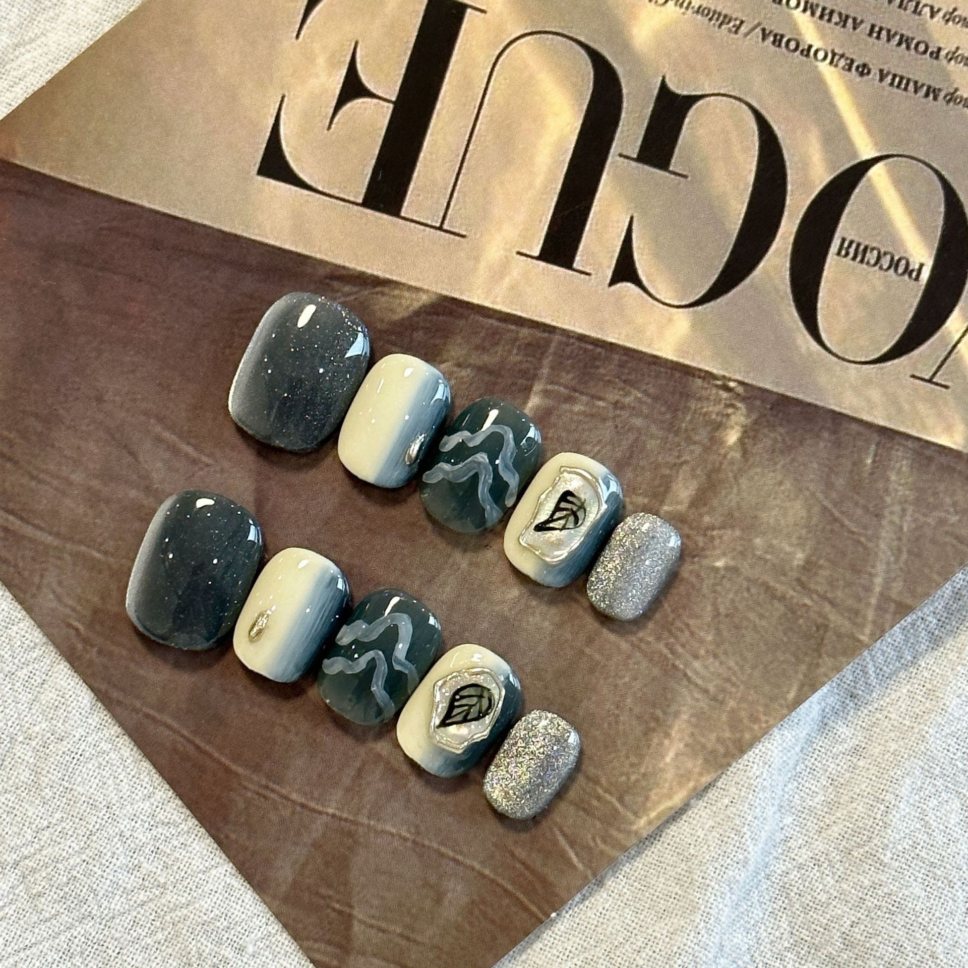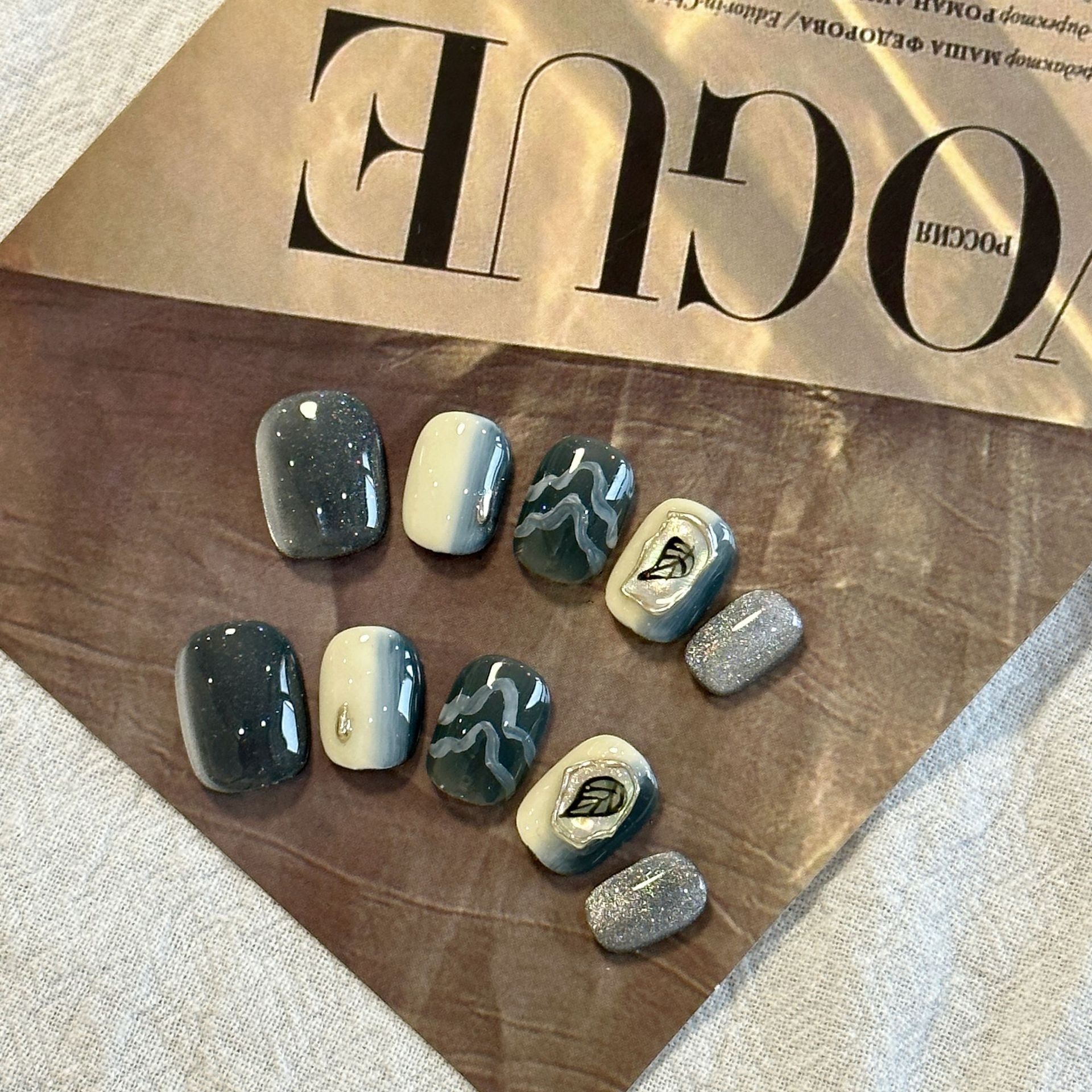 Autumn And Winter Atmosphere Handmade Nail Art Short Nails Hot Girl Sweet Cool Contrast Color Hand-painted European And American Retro White