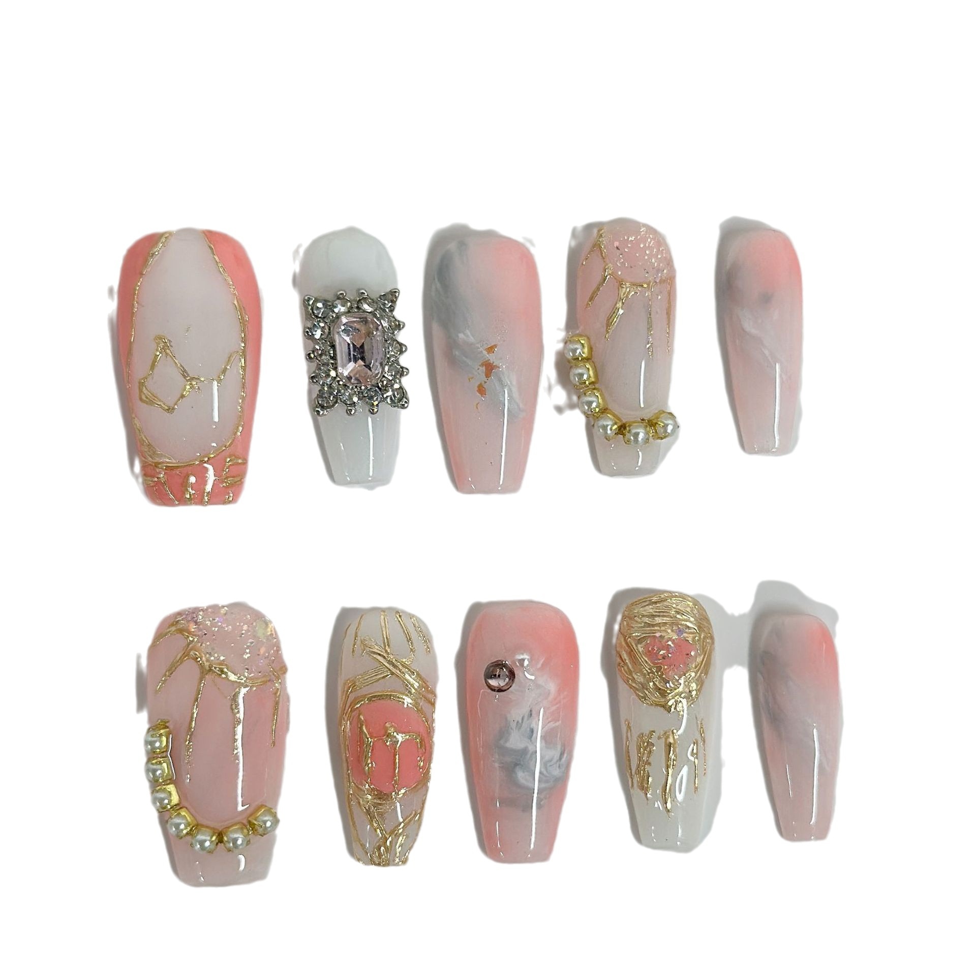 Virgo Zodiac Series Designer Pure Handmade Wearable Nail Art Light Therapy Nail Art Finished Product