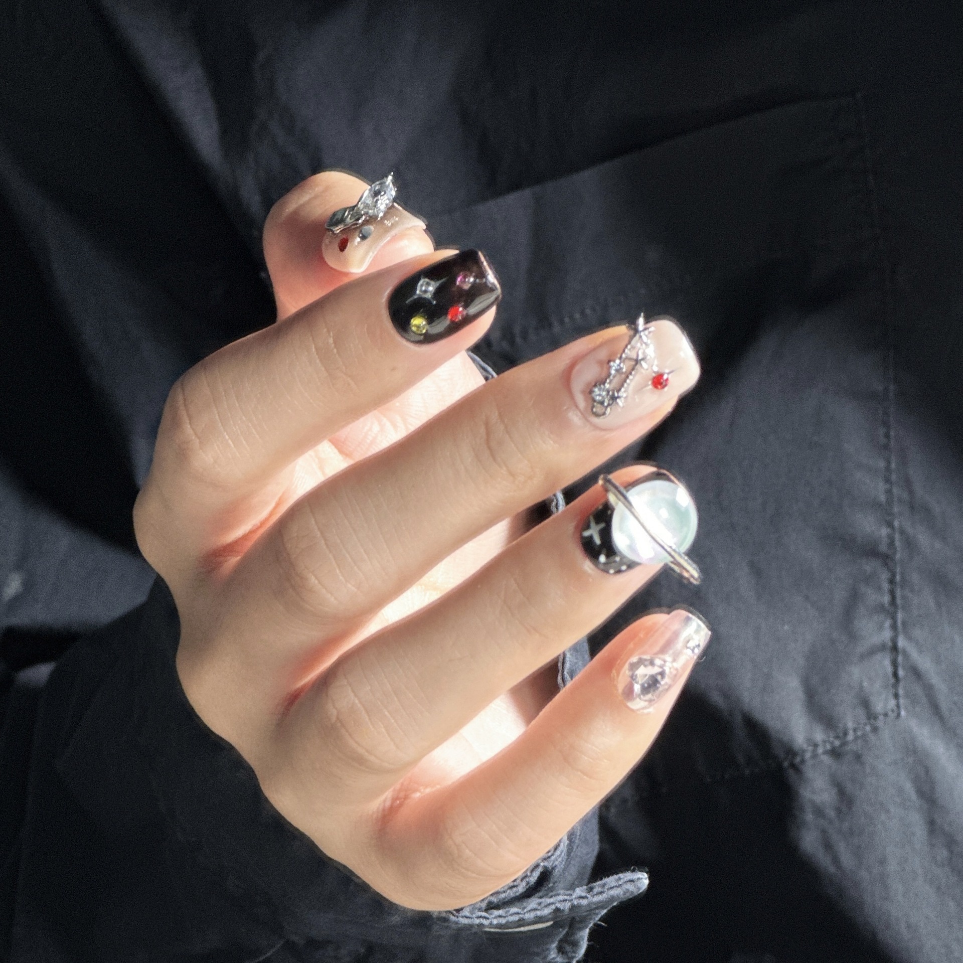 Y2k Sweet Cool Pure Handmade Wear Nails Star Love Hot Girl Sweet Cool Style Cross Finished Nail Art Nail Pieces