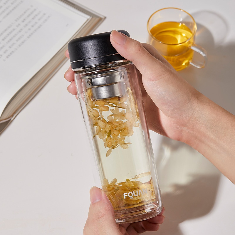 Moss Glass High Borosilicate Double-layer Glass304 Stainless Steel Filter Tea Water Cup Office Handy Cup