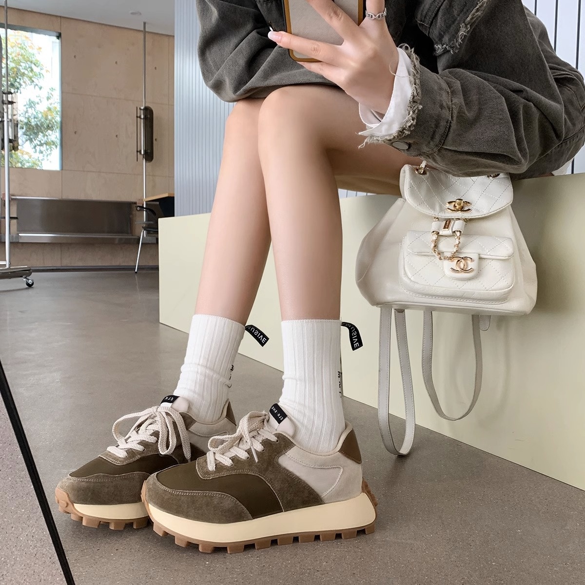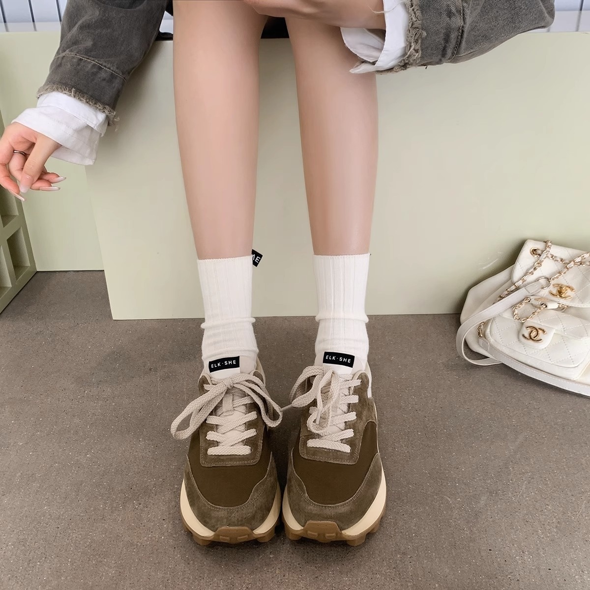 Gu Yun丨Milk Tea Forrest Gump Shoes Women Hot Style All-match Colorblock Thick Bottom Heightening Casual Daddy Shoes Autumn