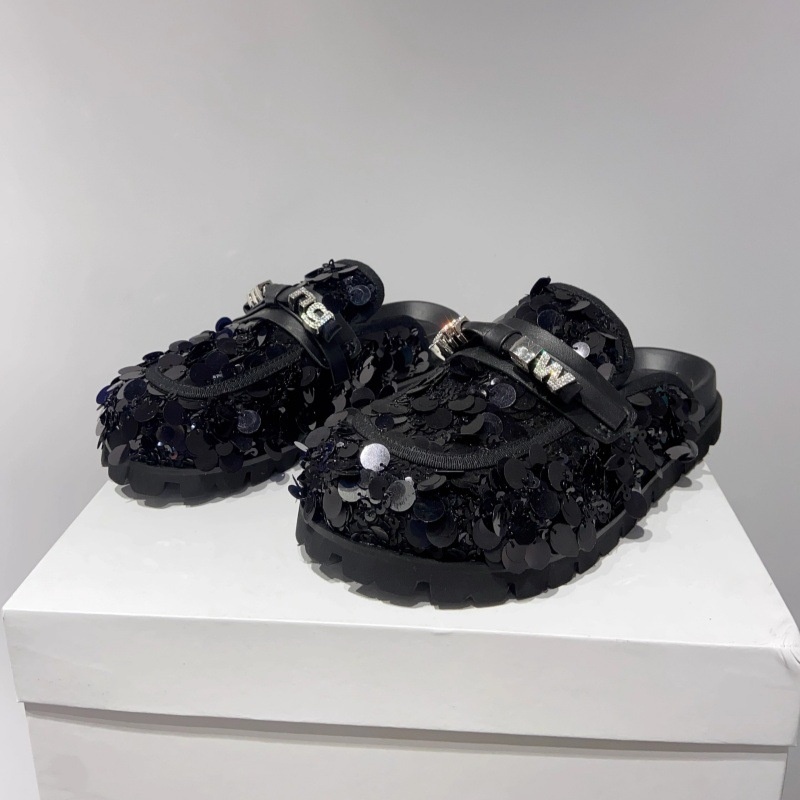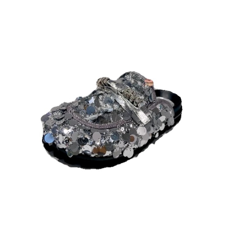 Baotou Slippers For Women Spring Sequined Rhinestone Thick Sole Fashionable Versatile Mules Lazy Birkenstock Shoes For Women