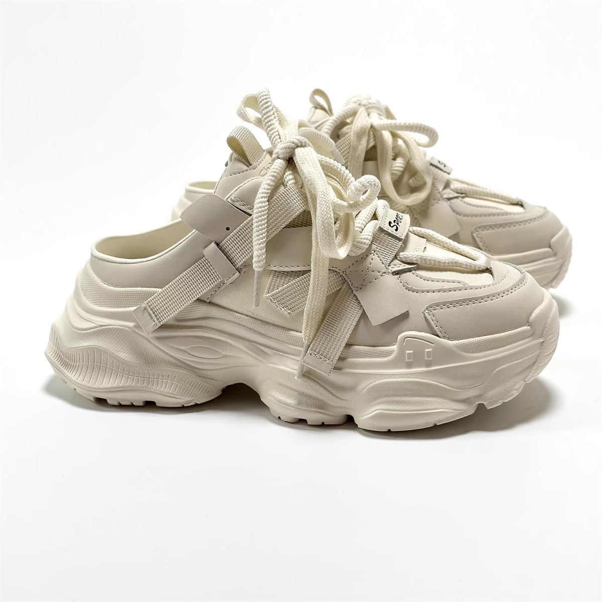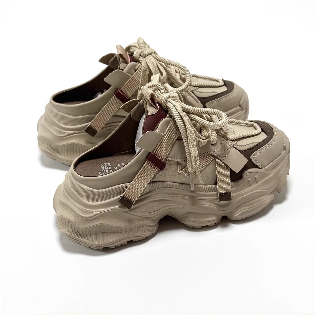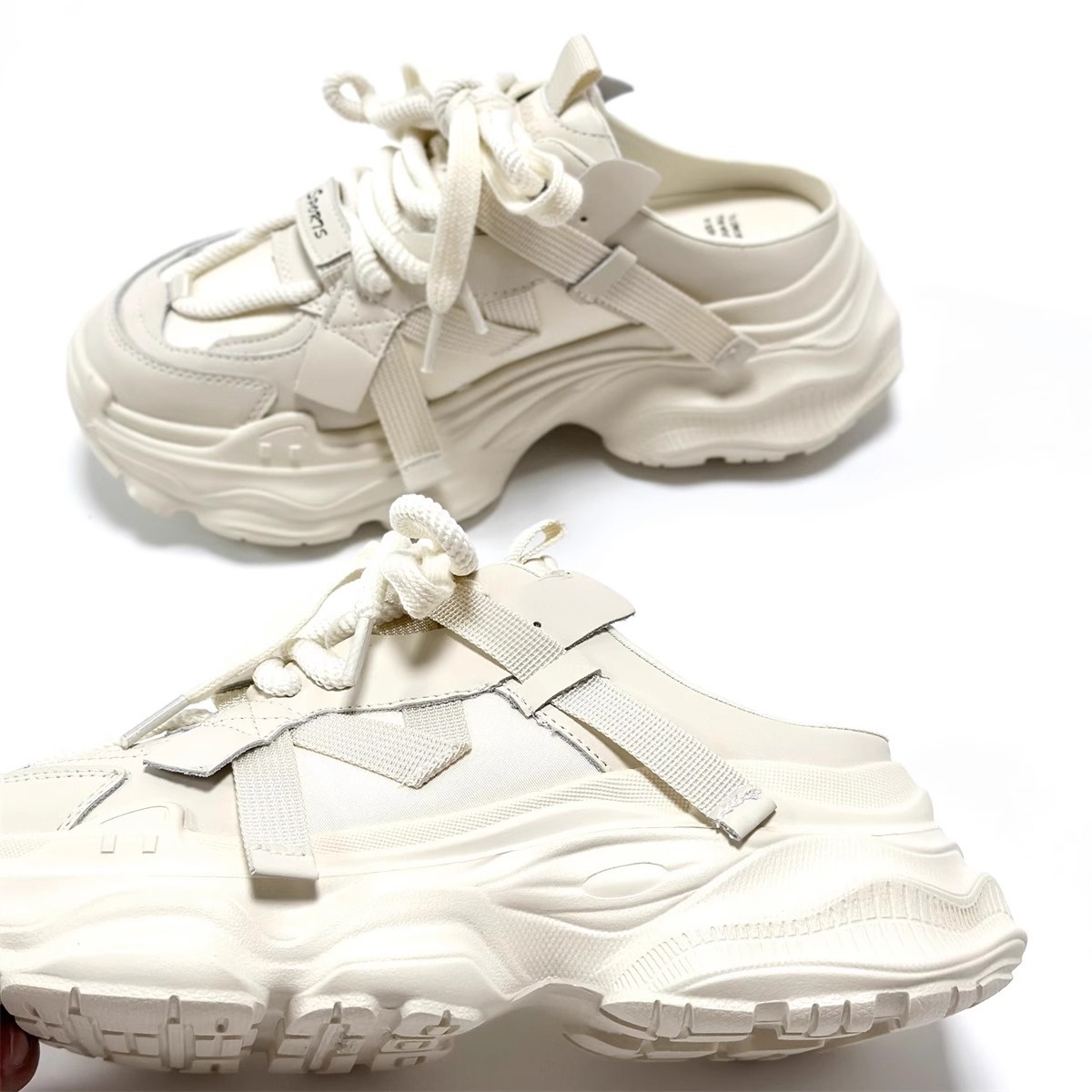 European Station Lightweight Height-enhancing Closed-toe Half-slippers For Women Summer Outdoor Casual Thick-soled Genuine Leather Versatile Sports Dad Shoes