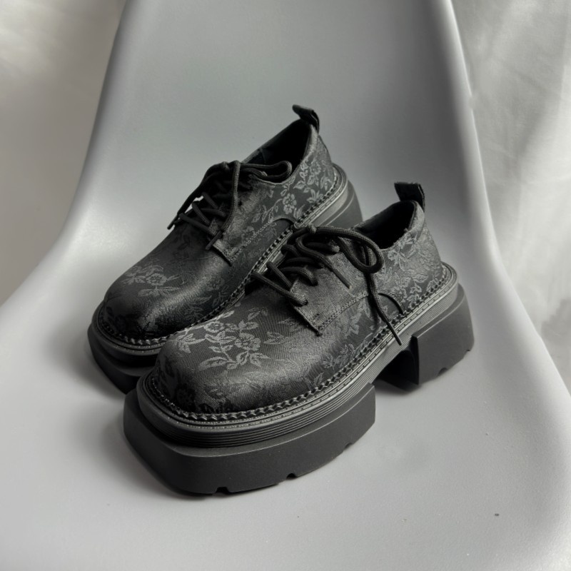 Gu Yun丨National Chinese Style Spring Style Printed Thick Bottom Platform Shoes Loafers Square Toe Women's Shoes
