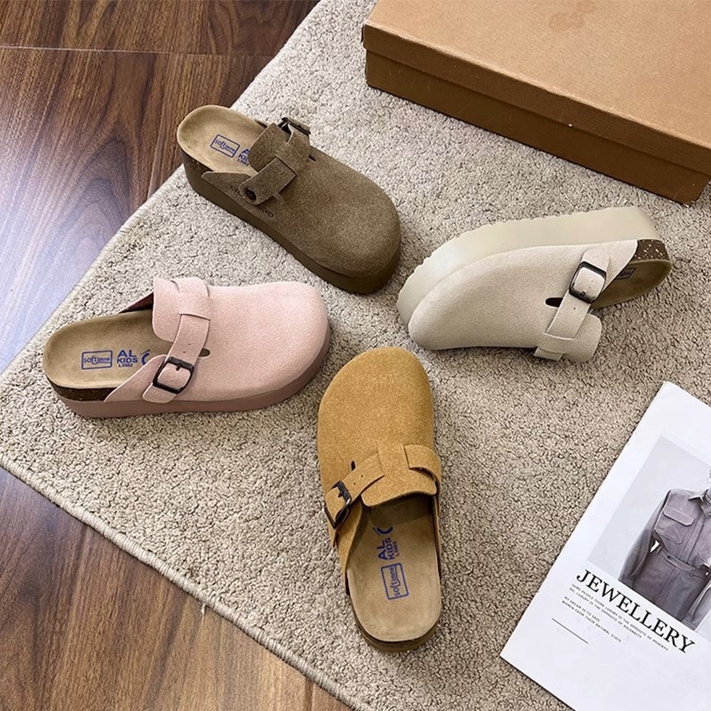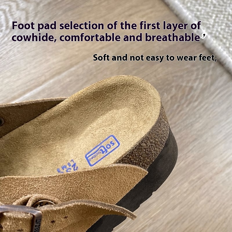 Gu Yun丨Genuine Leather Thick-soled Two-wear Birkenstock Half-slippers For Women Autumn Style Slip-on Closed-toe Slippers Birkenstock