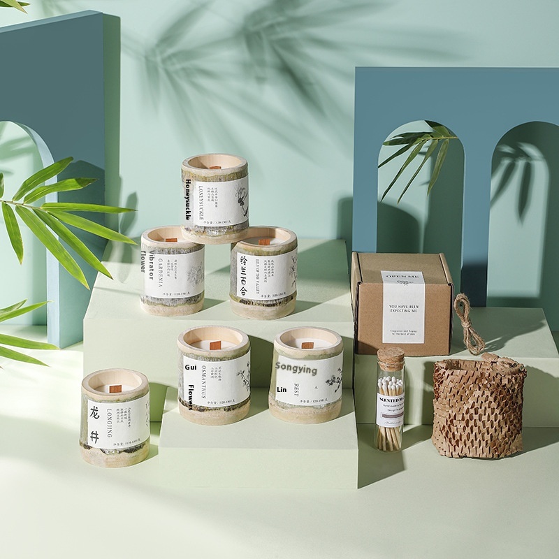 严选竹筒杯香薰蜡烛室内持久留香竹子香薰大豆蜡香氛蜡烛礼盒
