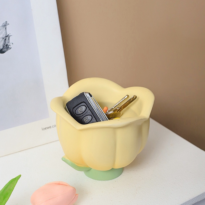 Modern Simple Creative Flower Porch Desktop Sundries Storage Box Resin Crafts Home Bedside Night Light
