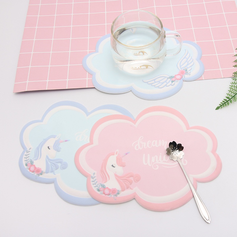 Cloud Dream Paradise PVCSoft Coaster Cartoon Creative Unicorn Placemat Desktop Homeulation Anti-slip Mat