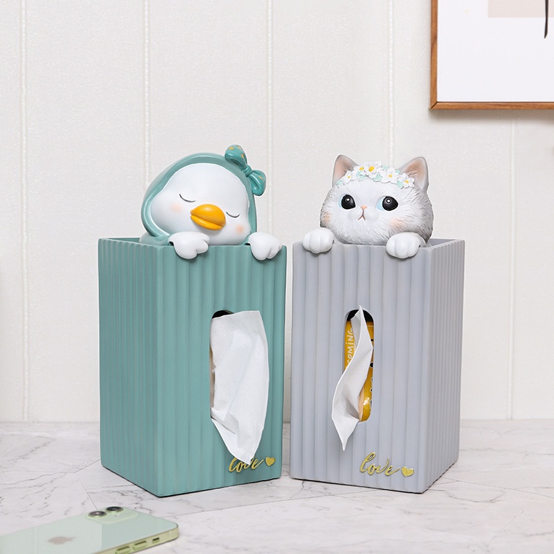 Creative Cartoon Desktop Paper Box Resin Crafts Home Restaurant Coffee Table Paper Towel Storage Box Decoration