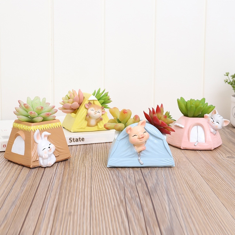 If Home Creative Camping Diary Resin Succulent Flower Pot Micro Landscape Desktop Gardening Potted Bonsai