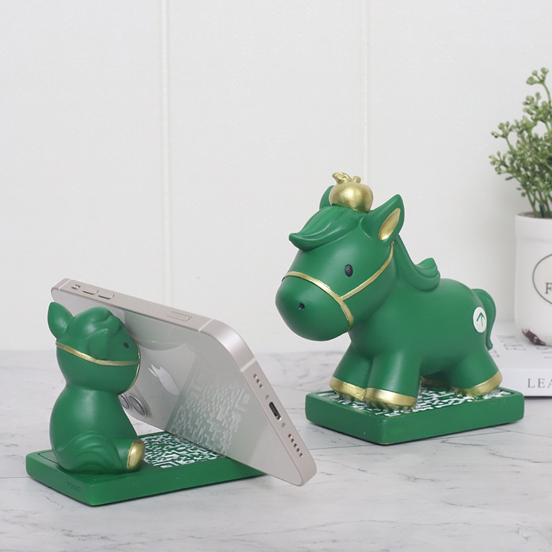 Modern Simple Creative Green Horse Resin Desktop Mobile Phone Stand Home Office Ipad Tablet Computer Chasing Drama Stand
