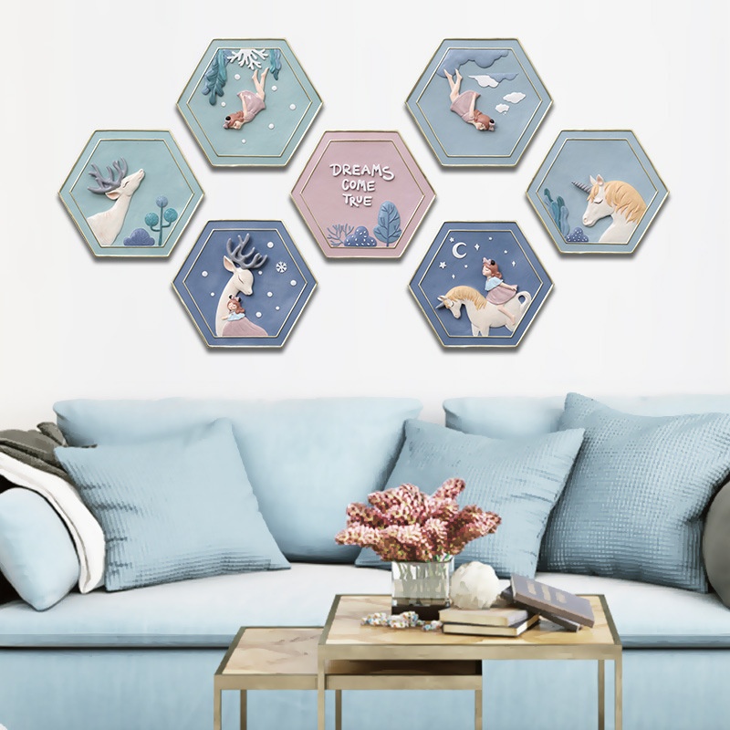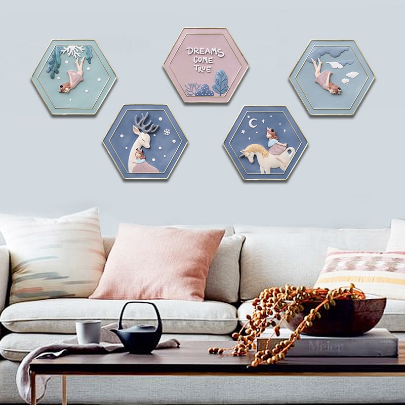 If Resin Cartoon Elk Wall Combination Decoration Creative Home Living Room Wall Hanging Crafts