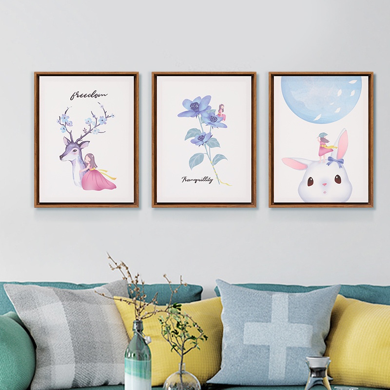 If Home Cartoon Creative Flowers And Dreams Triptych Set Living Room Study Wall Hanging Decoration Painting