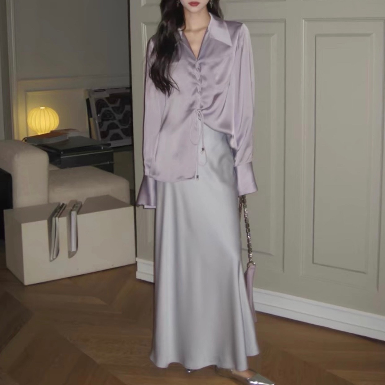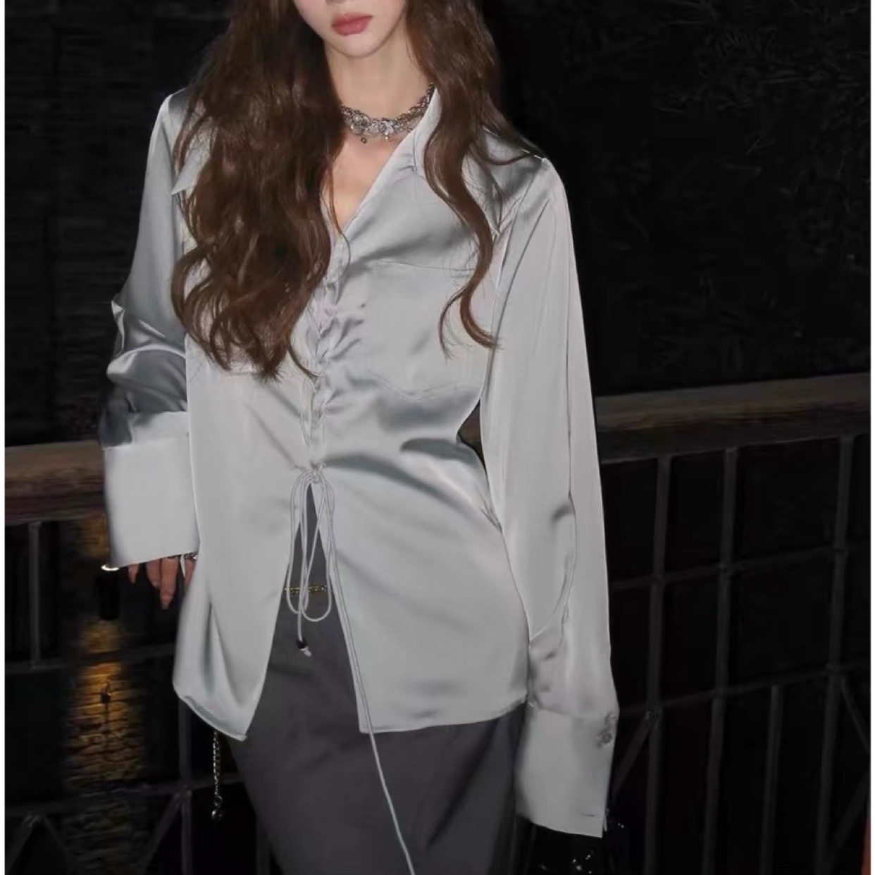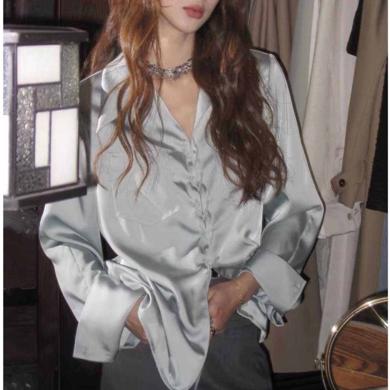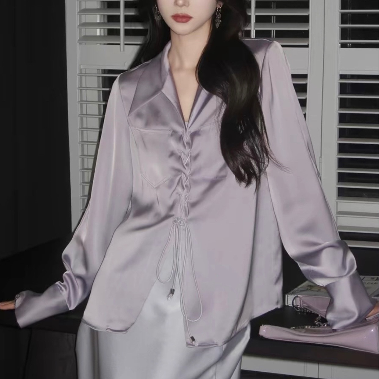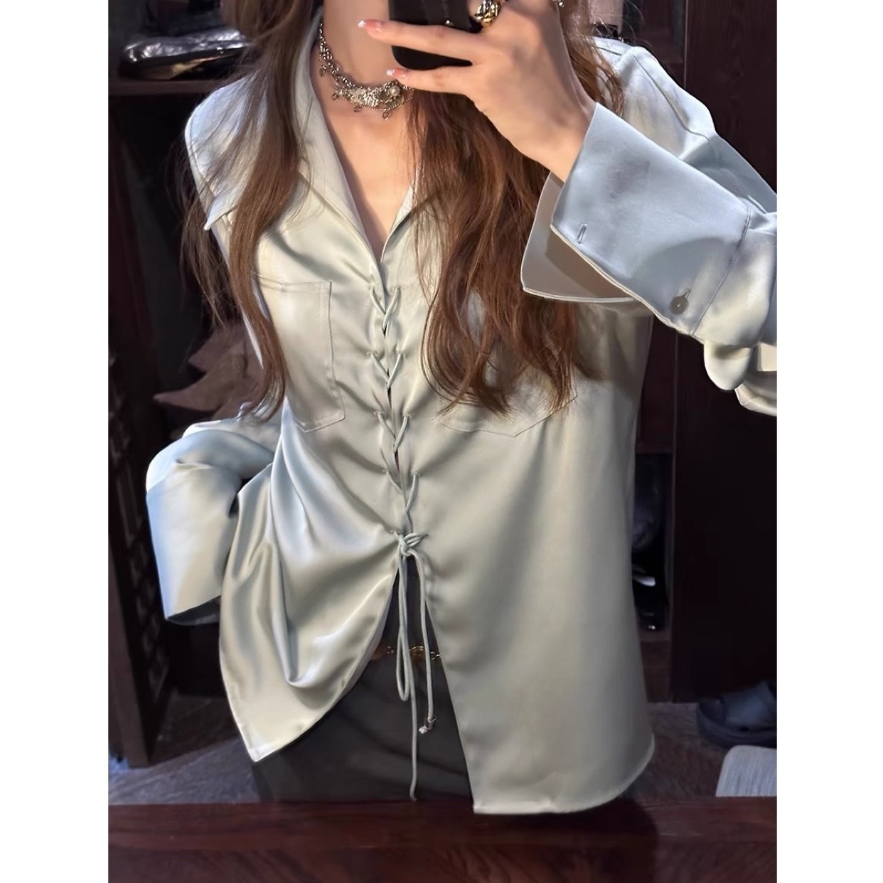 Korean Sweet Style Satin Shirt Slightly Loose Slim Tops For Women Spring