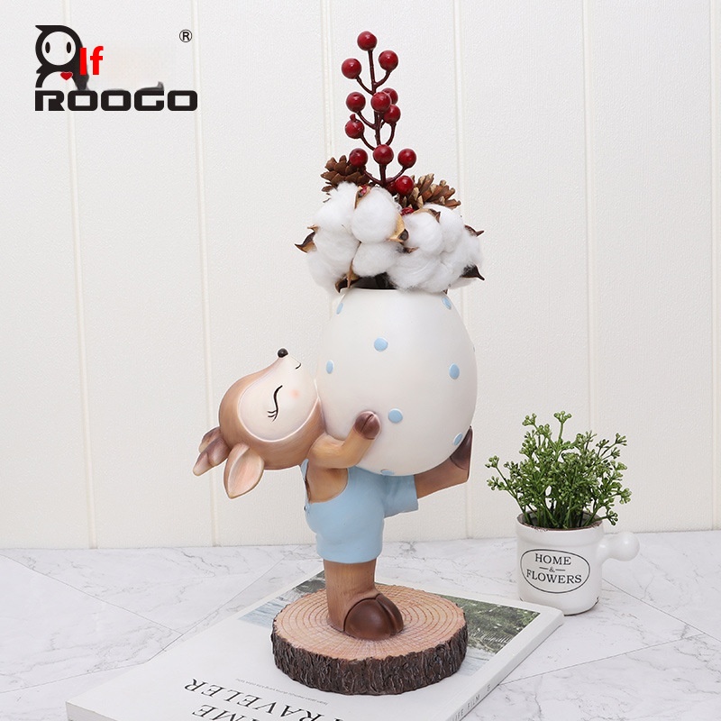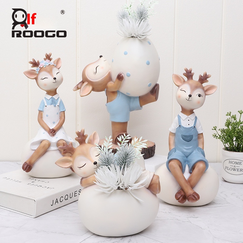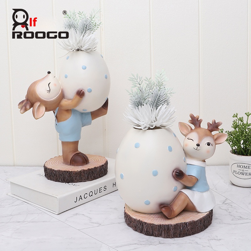 If The Creative Easter Egg Deer Resin Ornaments Original Cute Deer Baby Flowerert Home Decoration Gift Ornaments