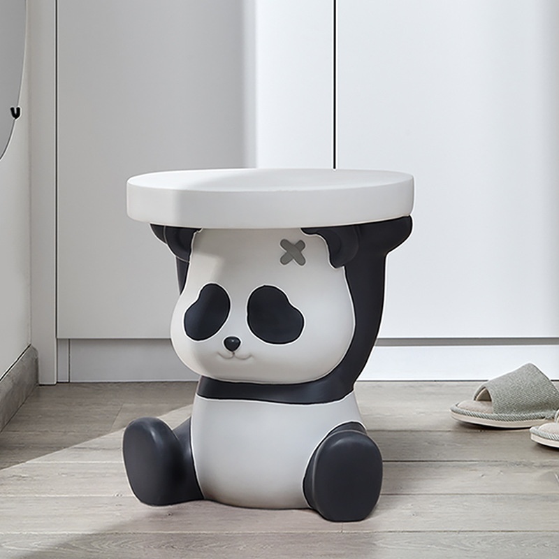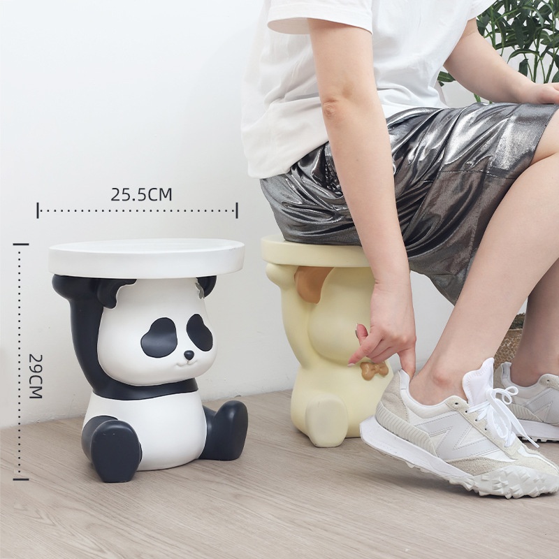 Resin Cartoon Panda Shoe Changing Stool Home Entrance Home Living Room Coffee Table Round Small Stool Creative Low Stool